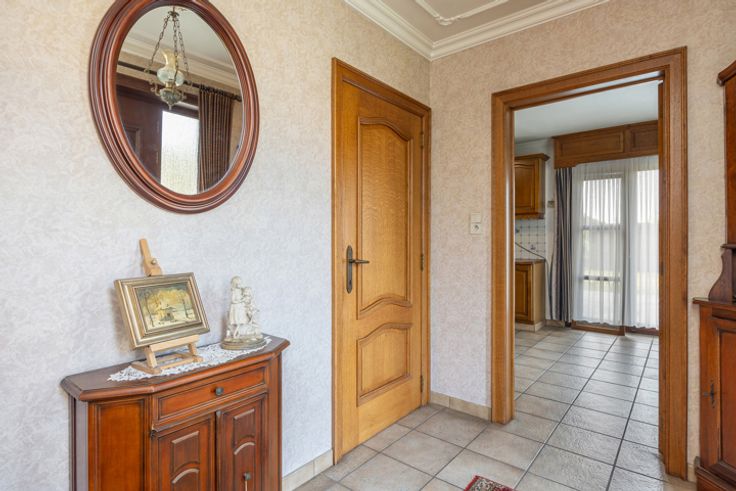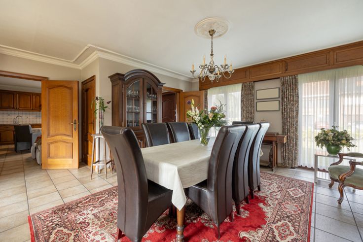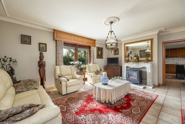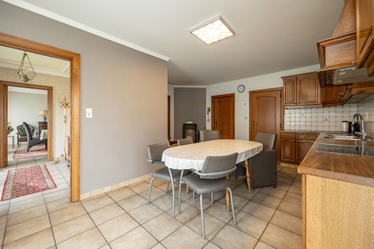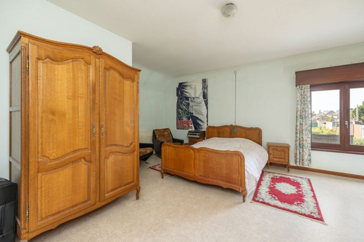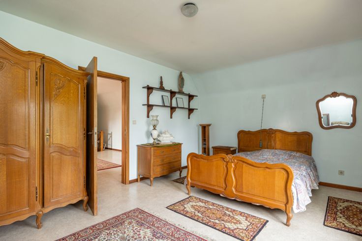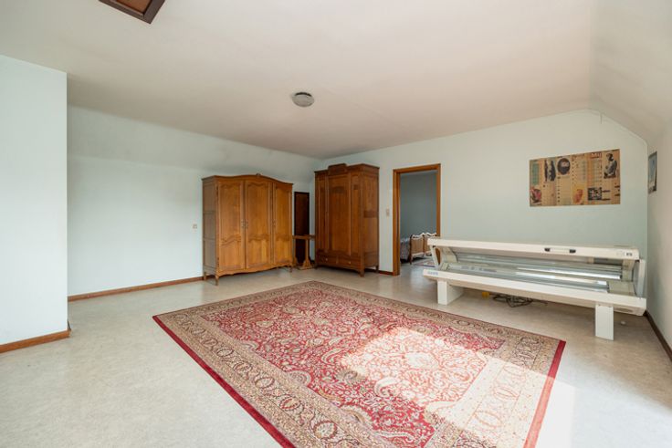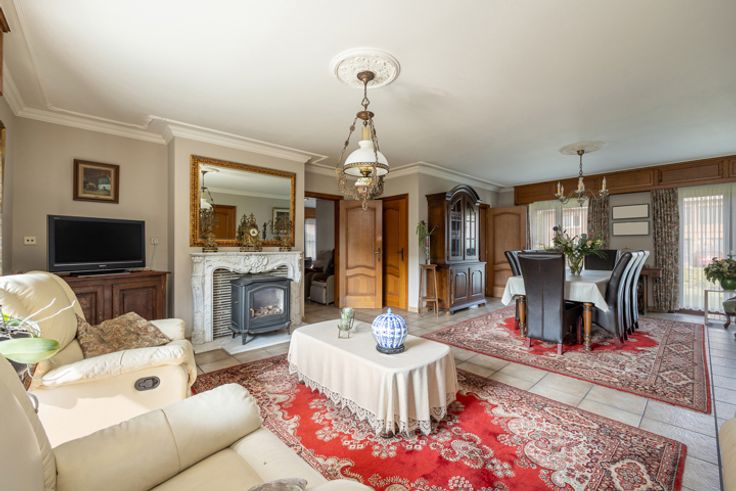 Deze grote woning is een waar paradijs voor wie houdt van ruimte en licht . Bij het betreden van de woning kom je binnen in een uitnodigende hal die leidt naar een royale living, waar grote ramen zorgen voor een overvloed aan natuurlijk licht. Deze leefruimte is voorzien van een sfeervolle houtkachel, wat zorgt voor een warme en gezellige sfeer. De woning beschikt over twee ruime kamers op de begane grond, die perfect kunnen worden ingericht als slaapkamer, bureau of praktijkruimte. Daarnaast is er een apart toilet voor extra comfort. De ruime eikenhouten keuken is volledig uitgerust en heeft een authentieke uitstraling. Aansluitend vind je een handige berging, ideaal voor extra opslag of het creëren van een bijkeuken. Op de bovenverdieping word je verwelkomd door een grote hal, die dankzij zijn ruime opzet eenvoudig kan worden omgebouwd tot extra kamers of een multifunctionele ruimte. Verder bevinden zich hier nog twee grote kamers, elk met voldoende ruimte voor een comfortabel interieur. Er is ook een toilet en een ruimte die kan worden omgevormd tot een moderne doucheruimte. Het huis beschikt ook over een opbergzolder, toegankelijk via een luik. Boven de inpandige garage is ook een extra een zoldergedeelte. De woning staat op een groot perceel, wat tal van mogelijkheden biedt. Het stuk rechts van de woning werd eerder verkaveld. Tot slot zijn er nog twee garages aanwezig, ideaal voor het stallen van voertuigen of het gebruik als werkplaats. Ben jij op zoek naar een