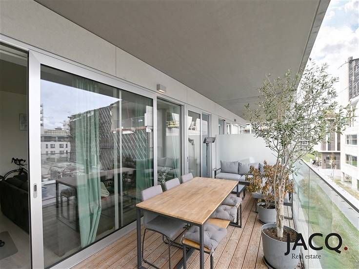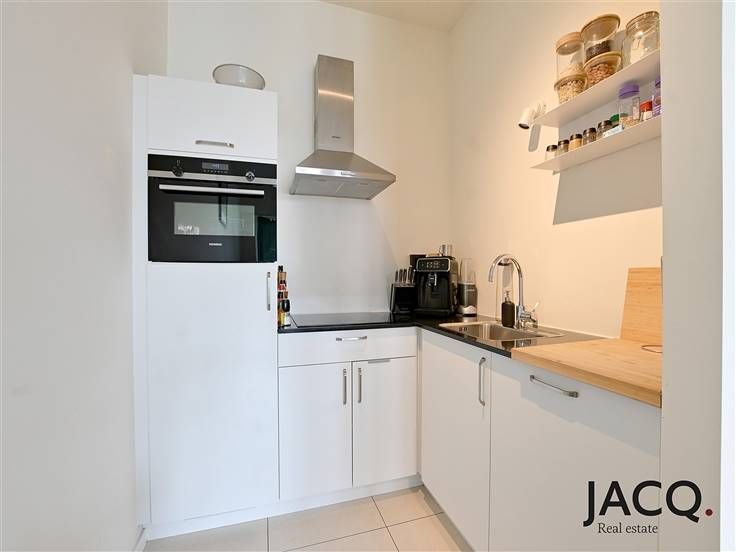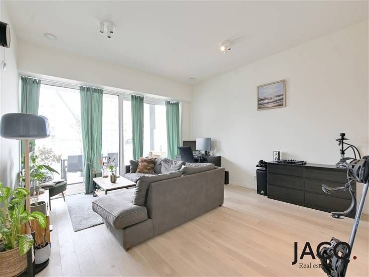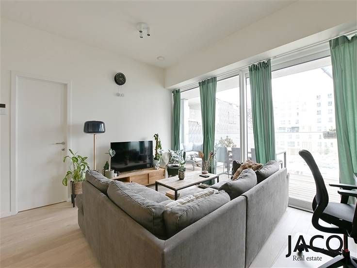 Nieuwbouw appartement op toplocatie Nieuw Zuid. U betreedt het appartement langs de inkomhal, hier is ook een berging en een apart toilet. De lichtrijke leefruimte is voorzien van vloerverwarming. De open keuken is volledig geïnstalleerd met alle toestellen. De badkamer is voorzien van een dubbele lavabo en een douche. Via de leefruimte en slaapkamer heeft u toegang tot het uitzonderlijk ruime terras. Het appartement voldoet uiteraard aan alle energetische normen. Extra's: gemeenschappelijke kosten van 110 euro/maand, mogelijkheid tot het huren van een autostaanplaats voor €115/maand. Wilt u graag wonen op een AAA locatie vlak aan de schelde en het bruisende zuid? Neem dan snel contact op met Sam 0474.42 00 76 of sam@ilovejacq.be