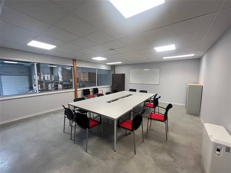 Kwaliteitsvolle, semi-industriële site Te Koop in de industriezone van Roeselare-Beveren. Het magazijn bestaat uit +/- 450 m², aansluitend vindt men +/- 55 m² gelijkvloers kantoren en finaal nog een 130 m² polyvalente ruimtes (kantoren, sociale ruimtes,...).