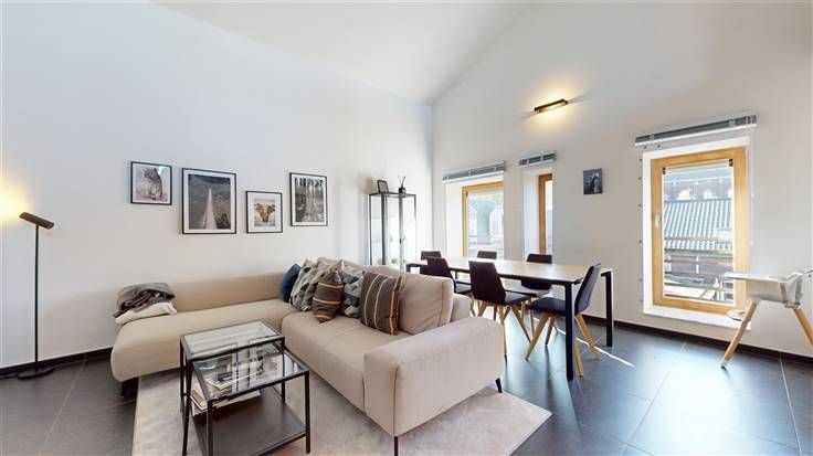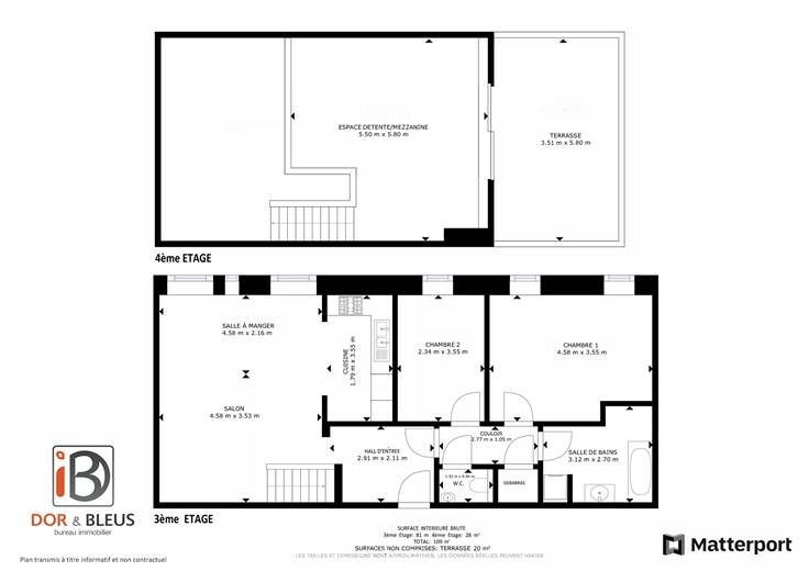 4ème ét. : mezzanine/espace détente (+/-32 m²), possib. chambre, accès à la terrasse.