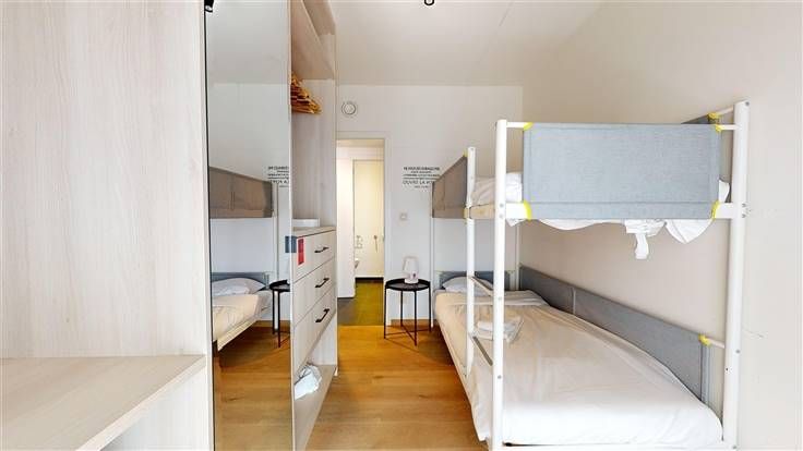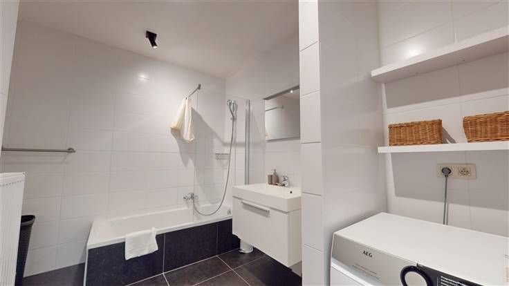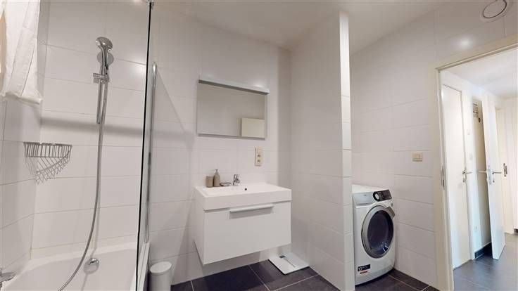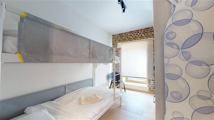 3ème ét. : hall d'entrée (+/-6 m²), séjour (+/-26 m²) ouvert sur la cuis. éq. (+/-6 m², taque vitrocéramique, four, hotte, frigo, congélateur, lave-vaisselle, meubles évier et de rangement), hall de nuit (+/-3 m²), wc indép. (+/-1,5 m²) et débarras, 2 chambres à coucher (+/-16 m² et 8 m²), sdb (+/-8 m², avec douche/bain, meuble lavabo et emplacement machines).