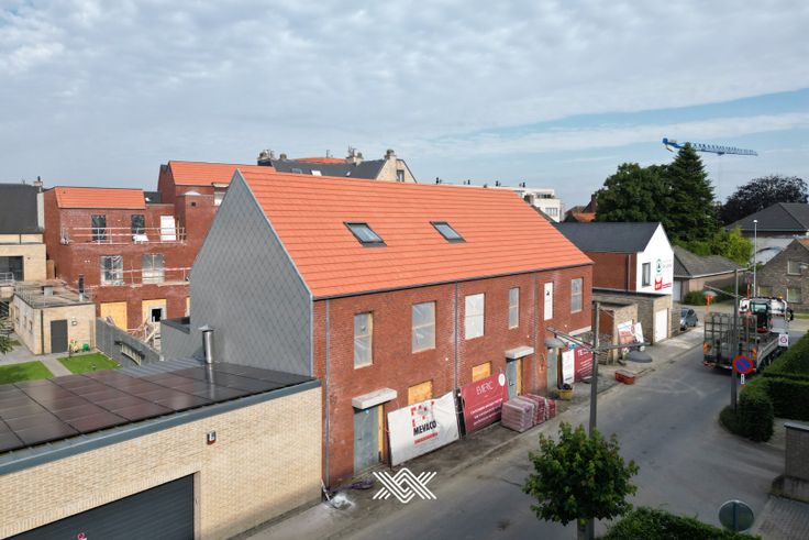 Deze woning is gelegen op een perceel van ca. 141 m² en werd ingedeeld in een inkomhal met een gastentoilet en ruimte voor een vestiairekast, een lichtrijke woonkamer bestaande uit een zit- en eetruimte met aansluitend de open keuken. Verder is er op het gelijkvloers ook een praktische berging met plaats voor een wasmachine en droogkast. Op het eerste verdiep zijn er drie slaapkamers voorzien, samen met een afzonderlijk toilet en een badkamer die wordt uitgerust met een dubbele wastafel en inloopdouche. De zolder is toegankelijk via een vaste trap en biedt plaats om een bijkomende kamer te creëren. Deze woning beschikt nog over een inpandige carport en een tuin en terras met zuidwestelijke oriëntatie waardoor het hier heerlijk vertoeven is.  Residentie ‘Emeric’ is een kleinschalig nieuwbouwproject bestaande uit 2 gelijkvloerse handelsruimtes, 6 bijzonder comfortabele en goed ingedeelde appartementen met aangename zonneterrassen, 3 nieuwbouwwoningen en een ondergrondse parkeergarage met privatieve kelderbergingen. Deze woningen worden uitgerust met fotovoltaïsche panelen, een ventilatiesysteem type D met maximale warmterecuperatie en een warmwaterboiler verbonden met een geothermische warmtepomp. Naast de geringe, ecologische voetafdruk heeft deze toekomstgerichte aanpak tal van voordelen voor zowel uw maandelijkse energiefactuur als uw persoonlijk comfort. Benieuwd? We helpen u graag verder. Renovatieplicht: nee