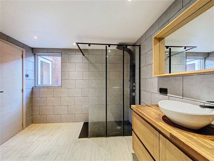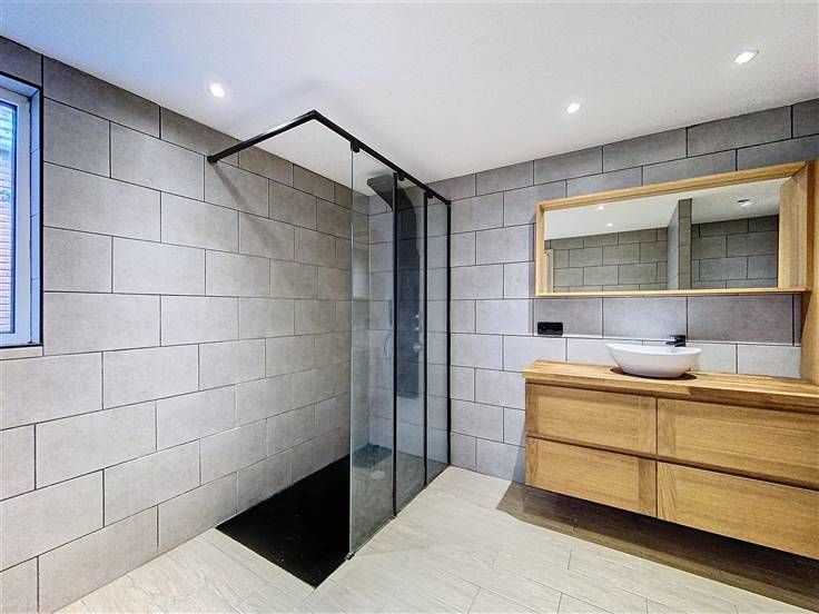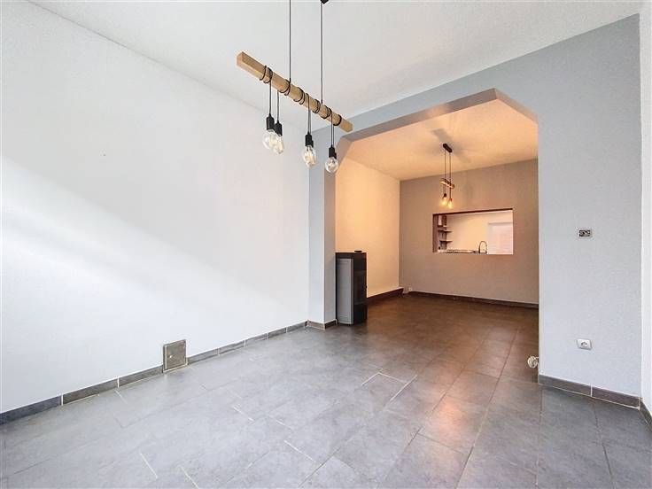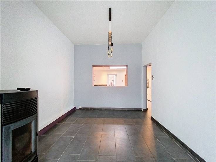 Rez: hall d'entrée, living, salon, cuisine, salle de douche avec WC et buanderie.