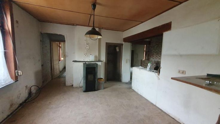 SOUS-SOL : cave de +/- 8 m² REZ : Séjour (+/- 40 m²), cuisine (+/- 14 m²), salon (+/- 13 m²), chambre à coucher (+/- 10 m²), wc ETAGE : 2 chambres (+/- 37 m²), salle de bains avec wc Le tout sur 4 ares 50 ca