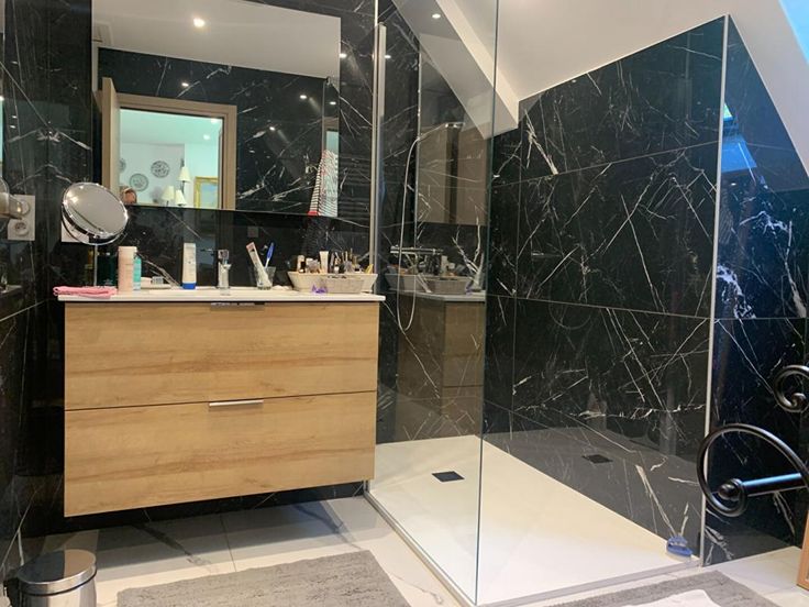 La salle d'eau haut de gamme est idéalement située au centre de l'étage entre les deux chambres et son accès simple et pratique.