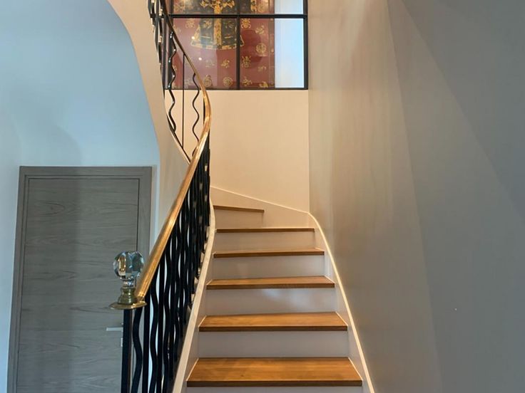 L'étage se décline en deux parties séparées par une mezzanine palière pouvant éventuellement accueillir un bureau.