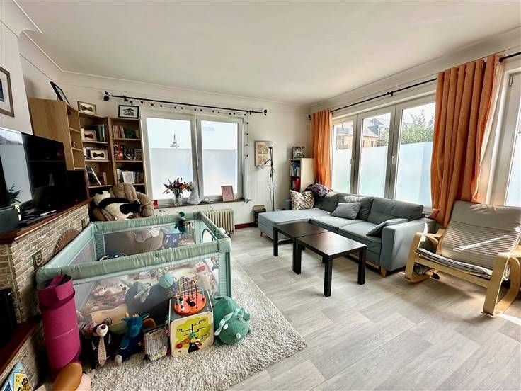 Deze flat van 80 m2 met twee slaapkamers ligt in het centrum van Jodoigne, op de eerste verdieping van een klein flatgebouw en beschikt ook over een garage, een grote kelder en een aparte ruimte op de derde verdieping die kan worden verbouwd tot kantoor of zolder. De woning bestaat overdag uit een grote woonkamer van 30 m2, een ingerichte keuken met ontbijthoek en 's nachts uit een doucheruimte, een berging, een toilet, bergruimte in de nachthal en twee slaapkamers van 13 en 9,31 m2. Kleine mede-eigendom met lage gemeenschappelijke kosten (+/- 80€/maand) Ideaal gelegen in de onmiddellijke nabijheid van alle voorzieningen.