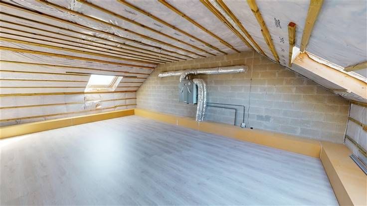 Grenier : mansardé et aménageable (+/-44 m²), possibilité chambre supplémentaire.