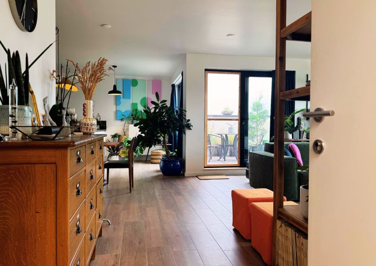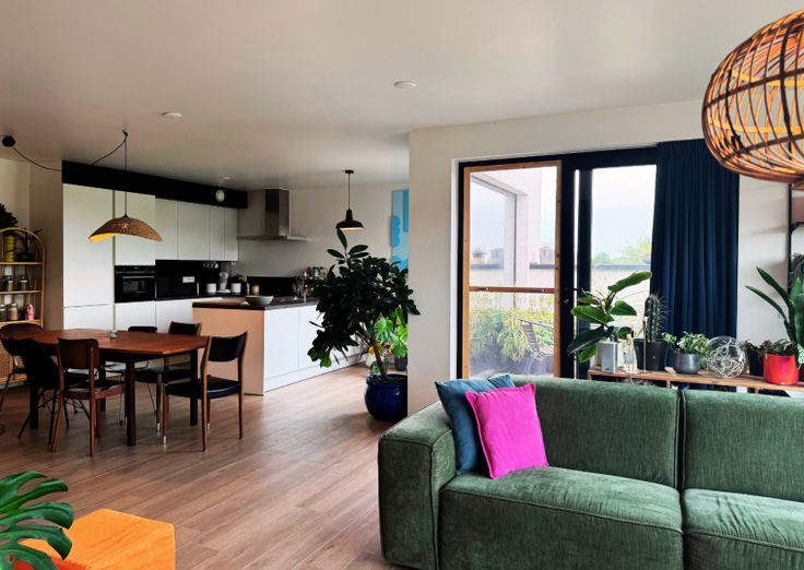 - Verdieping 2: Leefruimte met uniek uitzicht - Open keuken - Terras - Slaapkamer 1 - Slaapkamer 2 - Berging - Badkamer - Apart toilet + Gemeenschappelijke berging gang
