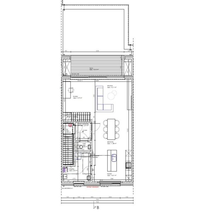 Indeling: inkomhal met apart gastentoilet, lichtrijke leefruimte met open keuken voorzien van alle toestellen, groot zonnig terras van 13m² met opbergkasten, berging met aansluiting wasmachine.