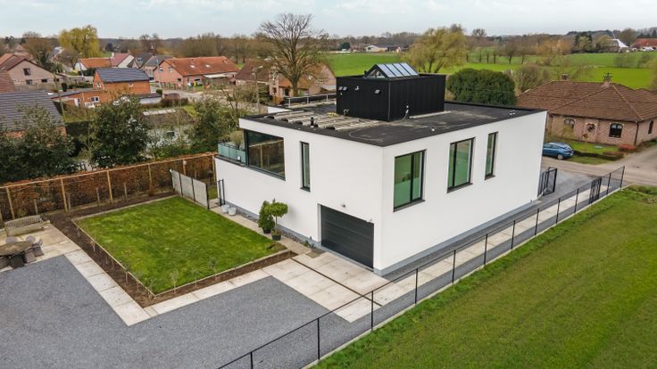 Uitzonderlijke villa met een bebouwde oppervlakte van 867 m² op prachtig aangelegd domein van 3877 m² met uniek en modern karakter, achterliggende weide en mogelijkheid tot uitoefenen van een vrij beroep op uitstekende toplocatie te Heist-op-den-Berg. Dit luxe vastgoed is gelegen op een landelijke locatie tussen Keerbergen, Putte, Beerzel en Schriek met winkels, scholen en openbaar vervoer in de directe omgeving. Rust en bereikbaarheid staan hier centraal! Het woongedeelte beschikt over een hypermodern uitgeruste leefkeuken, lichtrijke leefruimte met open zithoek en connectie naar het dakterras, 2 ruime slaapkamers met elk een eigen doucherkamer, masterbedroom met ensuite dressing, luxueuze badkamer en dakterras. Deze uiterst moderne villa met handelspand en bijbehorend magazijn zijn uitgerust met vloerverwarming, zonnepanelen, warmtepompen, kortom conform het Vlaamse energiebeleid. Bijkomend werd er gekozen voor een volledige onder keldering van de woning. Bijzonderheden: ongezien afwerkingsniveau, schitterende ruimtes, domotica systeem, alarm systeem met uitgebreide camerabewaking FDN incl 24/24 connectie met Group 4S, personenlift, autolift, zonnescreens, automatische toegangspoort, aanwezigheid van 3-fase elektriciteit, Deze tijdloze villa combineert alle hedendaagse luxe en comfort een landelijke toplocatie, waar uw bezoek een beleving zal zijn. Renovatieplicht: nee