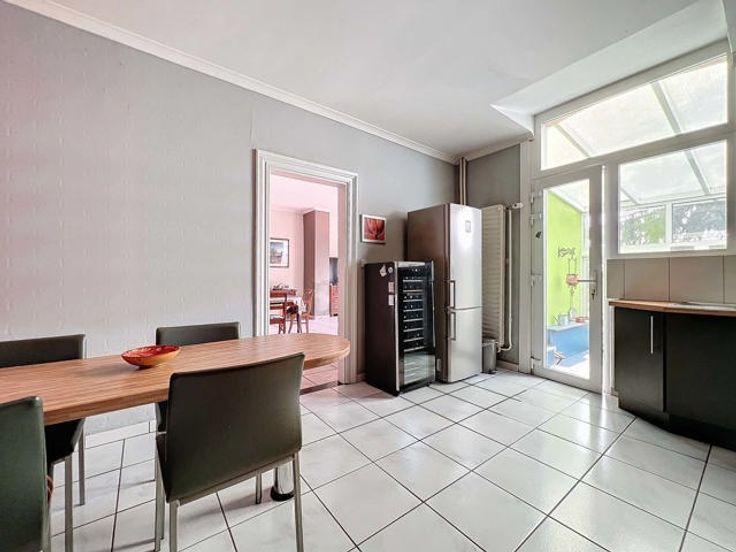 Nigel IMMO vous présente cette magnifique maison 2 façades située dans la charmante commune d'Oupeye. D'une superficie totale de 343 m² sur un terrain de 600 m², cette propriété allie confort, espace et sérénité, offrant un cadre de vie idéal pour les familles, ainsi qu'une opportunité parfaite pour une profession libérale. Au rez-de-chaussée, vous découvrirez un vaste séjour lumineux de 45 m², propice aux moments de détente en famille, une buanderie fonctionnelle, un WC indépendant, ainsi qu'un hall d'entrée spacieux. La cuisine équipée de 18 m² s'ouvre sur une véranda donnant accès à un agréable espace extérieur. Cet étage propose également un espace de 58 m² actuellement aménagé en cabinet vétérinaire, qui peut être facilement adapté à d'autres professions libérales. À l'étage, vous trouverez 4 chambres généreuses (30, 22, 19 et 17 m²), une grande salle de bain de 16 m², ainsi qu'un hall de nuit. Le grenier, entièrement aménagé, offre deux chambres supplémentaires et une salle de douche, idéal pour accueillir une grande famille ou pour créer des espaces de travail ou de loisirs. Les atouts de cette villa sont nombreux : une cave de 34 m², une terrasse ensoleillée (exposition sud-est) de 26 m², un jardin privatif de 320 m², possibilité de se parquer dans la rue, système d'alarme, cheminée bois. Revenu cadastral de 948 €, PEB classé D (280). Cette maison est une véritable opportunité, à saisir pour une personne souhaitant allié le privé et le professionnel dans 1 endroit ! O