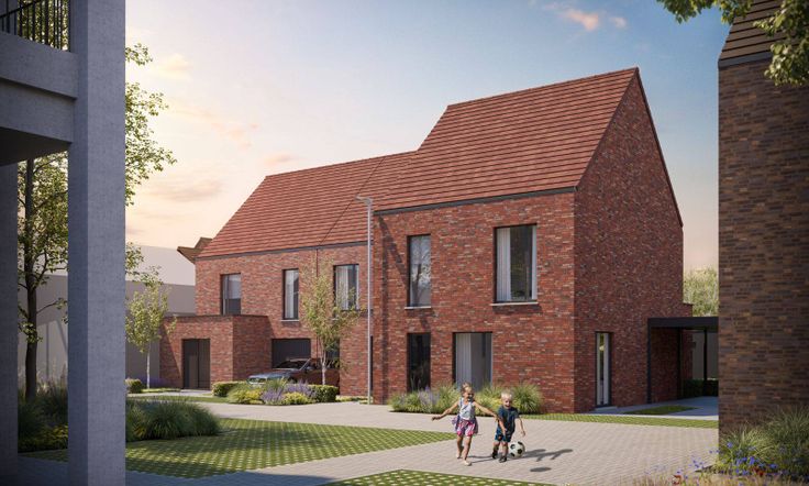 De Weverie in Deerlijk is een nieuwe woonbuurt met 16 energiezuinige huizen. Het zijn stuk voor stuk duurzame woningen met 2 bouwlagen en een hellend dak. Ze zijn opgetrokken in een hedendaagse stijl met rood/rood-bruine bakstenen en zwarte ramen. De huizen hebben een oppervlakte tussen 153 en 230 m2. De plaats voor de wagen is afhankelijk van de locatie van de woning. Zo zijn er huizen met een inpandige garage (lot 1-3), een carport, (lot 4-5) of een autostaanplaats in een parkeercluster (lot 6-15). Verschillende woningen liggen aan het park en er is ook één praktijkwoning. Dit alles geeft de woningen elk hun eigenheid. Een sfeervolle buurt met een groen kloppend hart.. Kom thuis in deze rustige, autoluwe buurt. Centraal in de wijk vind je een prachtig stadspark. Kinderen amuseren zich ten volle in deze autovrije groenzone. De bomen, bloemen en extensieve beplanting zorgen voor biodiversiteit in de hele buurt. Wil je verder op ontdekking gaan? Dan vind je in en nabij Deerlijk heel wat natuurgebieden, zoals De Bonte Os, De Gavers,… Ook alle dagelijkse voorzieningen zoals bakker, slager, apotheek, supermarkten, winkels bevinden zich op fietsafstand. Er zijn heel wat kleuter-en lagere scholen in de buurt.