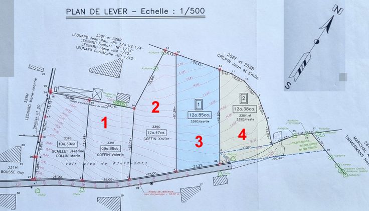Zeer mooie bouwgrond (n° 2) van 12,47 are gelegen in een doodlopende straat. Breedte aan straatzijde : 25 meter. Diepte : > 62 meter. Op het gewestplan : 100 % in woonzone.
