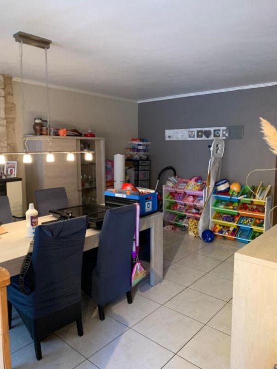 Ce bien est vendu par internet à partir du 30/10/2024 jusqu'au 07/11/2024. Maison en bon état Un hall d’entrée avec accès directe vers la salle à manger (4.78/6.4m = 30.6m2) Un salon Une cuisine équipée (lavabo, four, hotte, taques) - (4.73/3.25=15.37m2) Une salle de bains (bain, lavabo, wc)(2.87/2.21=6.3m2) Terrasse et jardin Etage : Palier Chambre 1 (2.57/3.55m=9.1m2) Chambre 2 (3.58/2.1=7.51m2) Chambre 3 (4.15/3.27= 13.57m2) Buanderie (wc bouché) (3.17/2.06=6.53m2) avec accès grenier (aménageable) SS : cave (humide) - pompe (pareil dans toute la rue). DIVERS : la maison est raccordée aux égouts, châssis double vitrage en PVC, système de chauffage par poêle aux pellets (dans le salon et la cuisine)