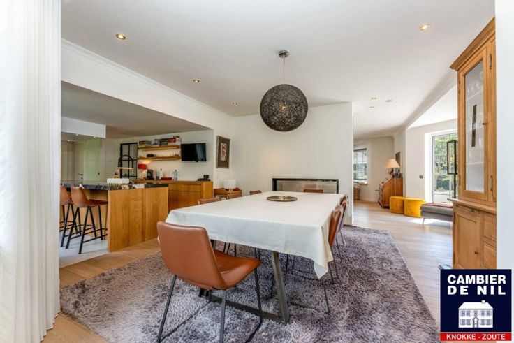 Mooie villa met 4 slaapkamers gelegen in een residentiele buurt op enkele minuutjes van het centrum van Knokke. Indeling; Inkomhal met gastentoilet en vestiaire, lichtrijke woonkamer met gashaard, eetplaats en een ruime ingerichte keuken en aparte wasplaats. Garage voor 1 auto. Buiten mogelijkheid tot parkeren 4 wagens. Op de eerste verdieping bevindt zich de master bedroom met aansluitende badkamer en 2 dressings, slaapkamer 2, aparte douchekamer, slaapkamer 3 en apart toilet. Kinderkamer / bureau of extra dressing. Op het 2de verdiep bevindt zich slaapkamer 4. Grote tuin met zuidgericht terras. EPC : 216 kWh/m²/jaar.