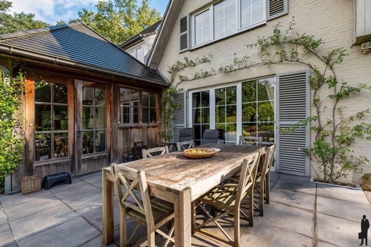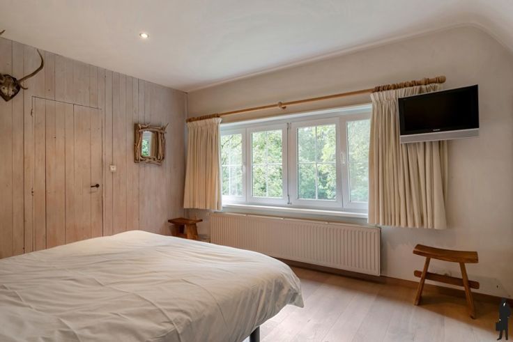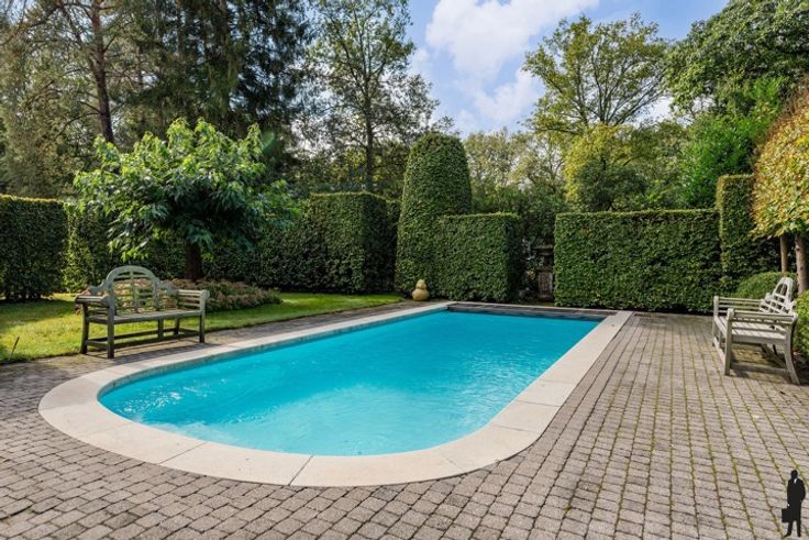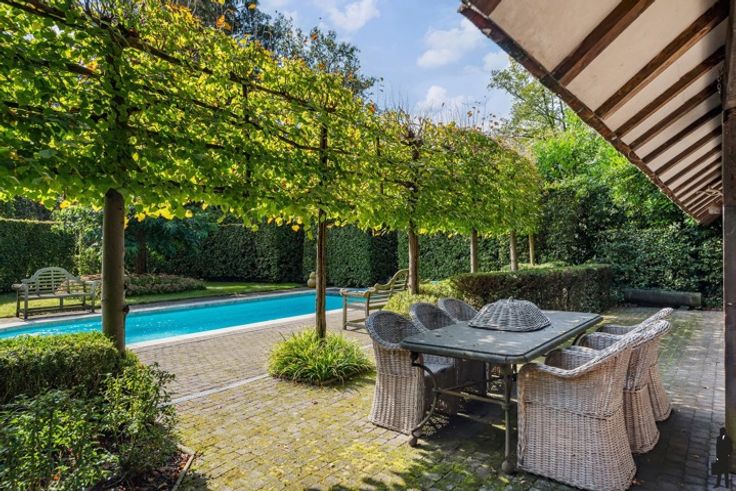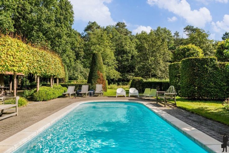 Over natuurgebied gelegen ZW georiënteerde karaktervilla met bijgebouw op ca. 5.975 m2 te Kapellenbos! Een lusvormige oprit leidt naar het huis. Inkomhal met gastentoilet en mooie trapopgang. Aan de linkerzijde is er de leefruimte met OH en grote ramen langs 3 zijden. Aan de achterzijde van het huis is er de leefkeuken met eigentijdse orangerie en aansluitend wasplaats/berging. Tot slot bureel of extra slaapkamer. Verd.: centrale nachthal. 3 slaapkamers waarvan 1 met ingemaakte kasten en douchekamer ensuite. 2 de badkamer en toegang tot de hobby- en 4de slaapkamer op de zolder bereikbaar met vaste trap. De magnifieke en uitzonderlijk open tuin heeft aangename terrassen en alle privacy. Verwarmd zwembad met poolhouse van 80 m2 met sanitair , sauna en bar! Voorts nog berging en dubbele garage op het terrein!