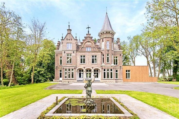 PRACHTIG KASTEEL met toegangsweg, tuin met OUDE BOMEN, en mooie VIJVER. Tevens ideaal voor B&B. UNIEKE EIGENDOM op een HECTARE, biedt enorm veel potentieel. TOTAALRENOVATIE. INDELING: inkom en traphal met vestiaire en apart toilet, lichtrijke gezellige leefruimte met open geïnstalleerde luxe-keuken, masterbedroom met LUXE-BADKAMER, bureau, aparte traphal om naar het 1ste verdiep te gaan: op het verdiep een studio, 4 slaapkamers met elk een eigen badkamer. Het 2de verdiep werd ingericht als feestzaal/polyvalente ruimte met extra keuken, slaapkamer, en sanitaire voorzieningen. 2 garages, en kelder. TROEVEN: alles extra geïsoleerd, dubbele beglazing, vloerverwarming/centrale verwarming op mazout (nieuwe hoogrendementsketel) + warmtepomp, conforme elektr., vergunning voor recreatie aanwezig. Bezoek na afspraak met IMMO BEGUIN: 0486/606 600