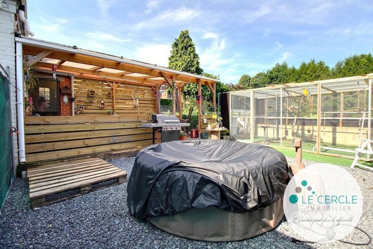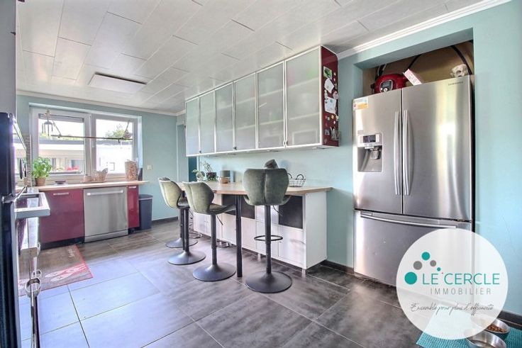 MORLANWELZ : idéal pour tous type d'activité et située dans un quartier calme à proximité du Parc de Mariemont, du centre-ville, de la gare et des commerces, cette coquette maison 4 façades avec 3 garages (15m² chacun avec volets automatiques), vaste parking privatif, terrasse couverte (25m²), grand jardin (4A80CA) et bureau indépendant (27,50m²) est composée, au rez-de-chaussée, d'un hall d'entrée (13,28m²) avec placards, d'une salle à manger (23,18m²), d'un salon (12,73m²), d'une buanderie (2,58m²), d'un wc séparé, d'une cuisine équipée (15,34m²: four, taque vitro, hotte et évier) et d'une salle de bain et douche (5m²). Le hall de nuit de l'étage (13,15m²) dessert 2 chambres indépendantes (22,43m² avec dressing et 14,10m²) et un espace rangement (6,88m²). Le grenier, accessible par une échelle escamotable, sert uniquement de rangement. Autres atouts: caves (20,63m²), châssis DV avec volets, chauffage central au gaz, système d'alarme avec caméra. PEB N°20240909001077: E 391kwh/m²/an - 68.656Kwh/an - 71kg CO2/m²/an. Surface exploitable: 158m². RC non confirmé: 895€ PRIX: faire offre à partir de 299.000€ sous réserve de l'acceptation des propriétaires. Surfaces approximatives (laser). Descriptif non contractuel. Contact: JOHAN SCALON: 064/841.801 (OPTION 1)