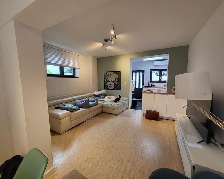 Indeling : wc - inkomhall - woonkamer 24m², aansluitend op de halfopen keuken 7m².