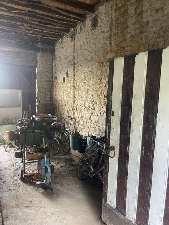Grange avec accès avant et arrière permettant le passage de véhicules du jardin à la rue.