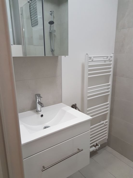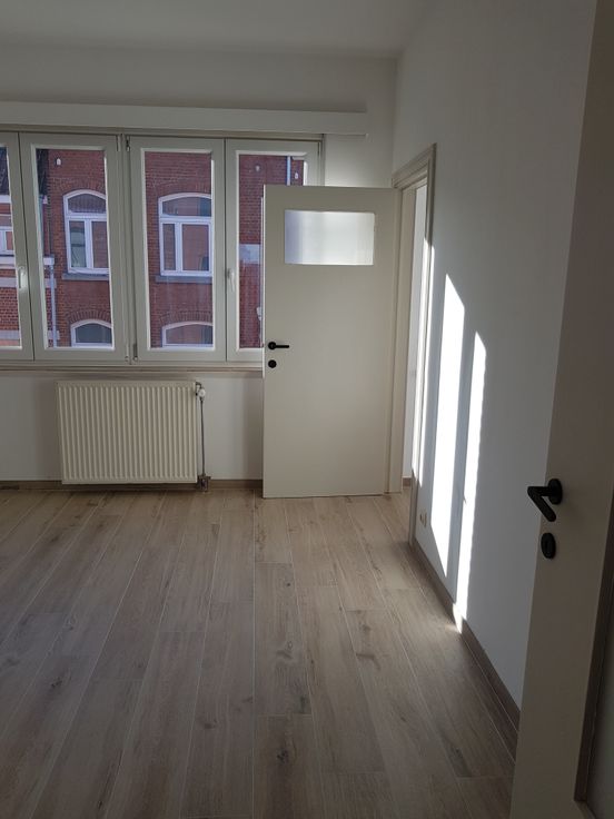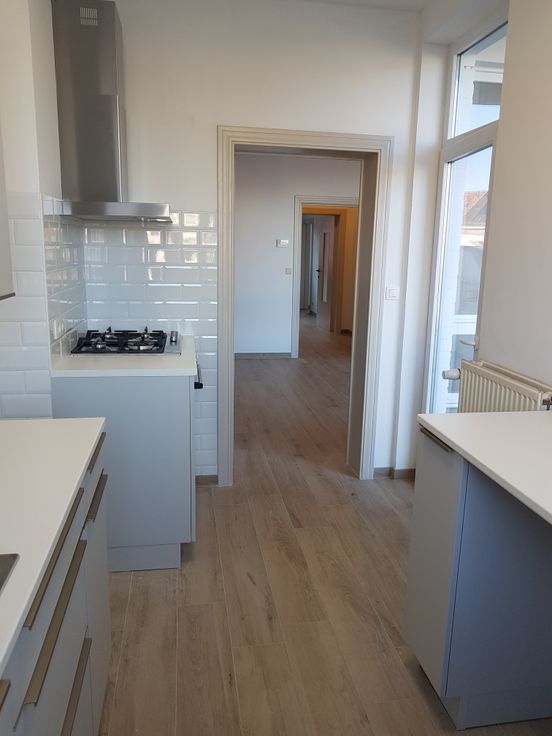 Appartement tout nouvellement rénové, idéal pour une personne seule ou un couple sans enfant et sans animaux. Situé au deuxième étage, sans ascenseur : hall, living avec une petite terrasse, une cuisine équipée toute neuve, salle de douche avec WC et ventilation mécanique, lavabo, chaudière individuelle au gaz à condensation : neuve, une grande chambre (4x4) et en enfilade, une autre petite pièce pour y faire un dressing ou un petit bureau. Double vitrage partout, vannes thermostatiques sur tous les radiateurs, tringles à rideaux et luminaires installés, une cave. Possibilité de louer un emplacement de parking pour une petite automobile dans la cour (60 euros en plus). Compteurs d'eau, de gaz et d'électricité : individuels. Les 50 euros de charges mensuelles comprennent l'éclairage et le nettoyage des communs ainsi que l'entretien annuel de la chaudière. Commerces à proximité immédiate. Aéroport Zaventem, Nato, Hôpital Paul Brien, faciles d'accès. Bus et Tram. Mail de motivation souhaité. Visites sur rendez-vous 0475 / 633 137. Agences immobilières : s'abstenir Svp. Bail de résidence principale de trois ans. Visites sur rendez-vous uniquement le samedi.