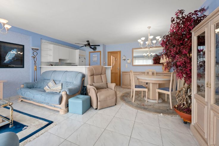 Dit prachtige appartement verwelkomt je via een stijlvolle inkomhal en straalt ruimte en comfort uit. De leefruimte met grote, open keuken vormt het hart van de woning en is perfect voor gezellige momenten. De keuken is bovendien voorzien van een handige berging. Het zonnige, zuidgerichte terras nodigt uit om de hele dag van de zon te genieten. Verder beschikt het appartement over twee slaapkamers, twee badkamers en een apart toilet, wat extra comfort biedt voor zowel bewoners als gasten. Een ideale plek om te genieten van luxe en rust, vlakbij de zee! Contacteer ons nu voor een bezoek. Renovatieplicht: onbekend