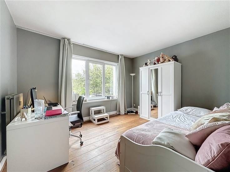 Bezoek deze woning met Christopher: 0478/07.34.26 // Vert Chasseur, aan de rand van het Ter Kamerenbos, op 50 meter van de Europese School, een prachtig 2-slaapkamer appartement van ±84 m² met een bureau en oostgericht terras, gelegen op de 1e verdieping van een goed onderhouden klein gebouw. Het bestaat uit een grote inkomhal van ±17 m², een woonkamer van ±33 m² met een bureauhoek, een volledig uitgeruste open keuken met een eetruimte van ±24 m² (oven, gasfornuis, afzuigkap, koelkast, vriezer, vaatwasser, magnetron), een gang met vestiaire, een hoofdslaapkamer van ±28 m² met een dressing en toegang tot een terras van ±29 m², een tweede slaapkamer van ±13 m², een bureau/derde slaapkamer van ±10 m² en een badkamer (bad, wastafel, uitgerustewasruimte, toilet). Parketvloeren, centrale gasverwarming, houten ramen met dubbele beglazing. Kosten: €175/maand (voorschot: gemeenschappelijke ruimtes, verwarming, warm en koud water). Sterke punten: uitstekende locatie, dak gerenoveerd in 2023, licht, grote hoofdslaapkamer met dressing, groot terras. De afmetingen worden ter indicatie gegeven. Beschikbaar vanaf 16/12/2024!