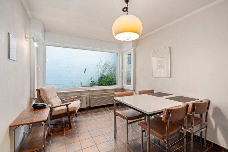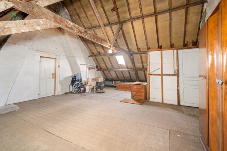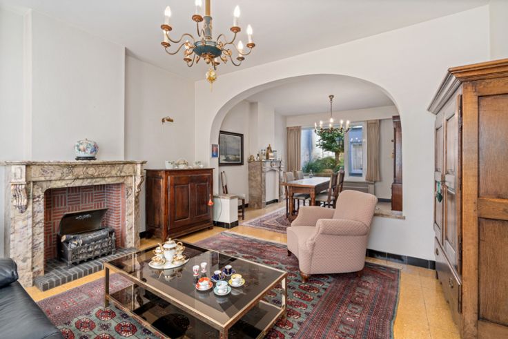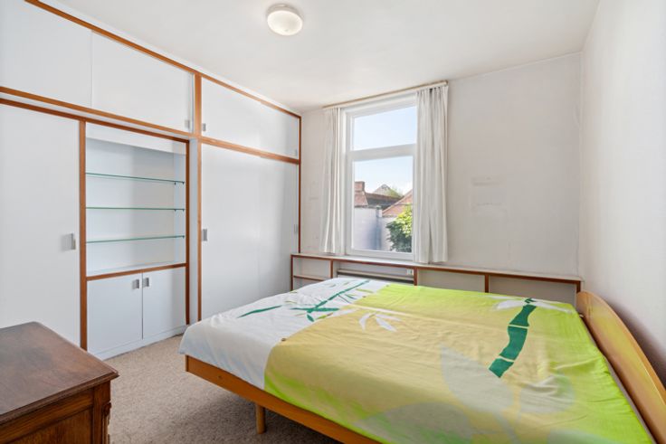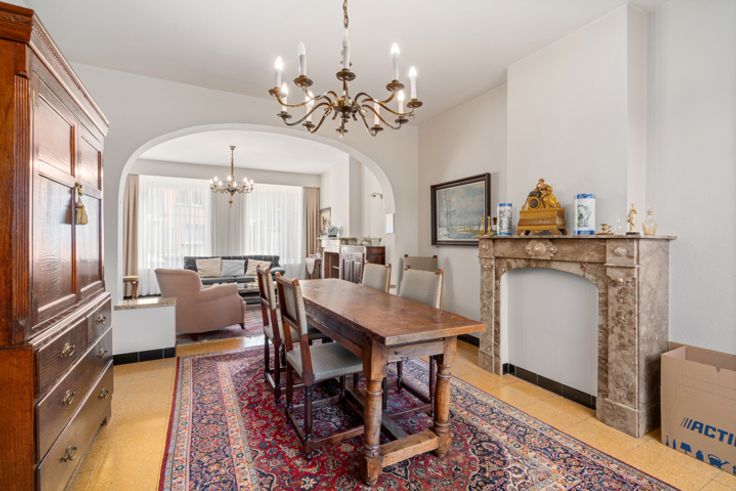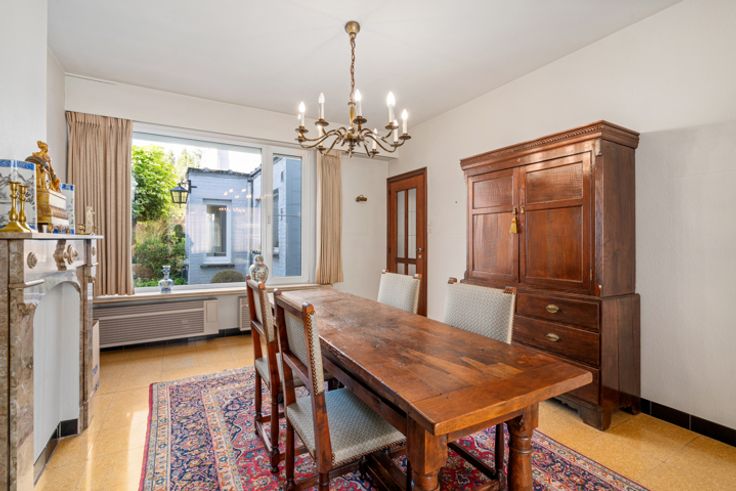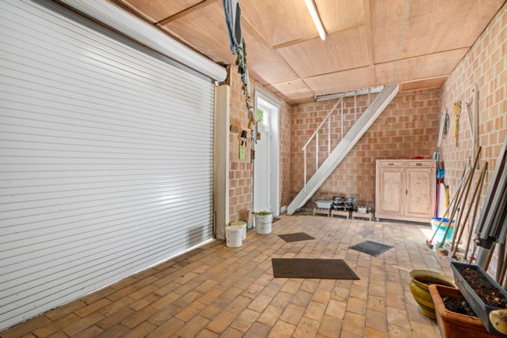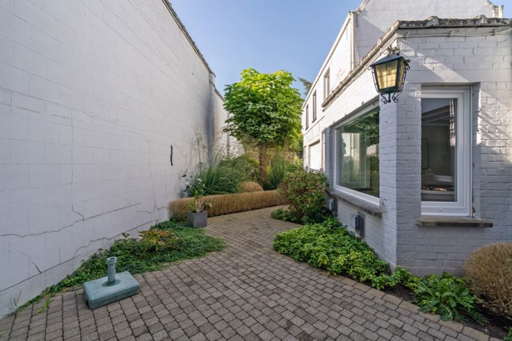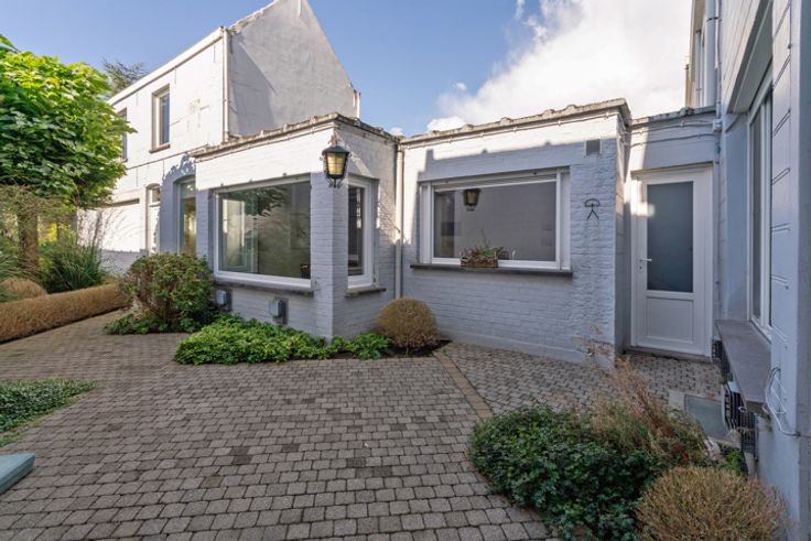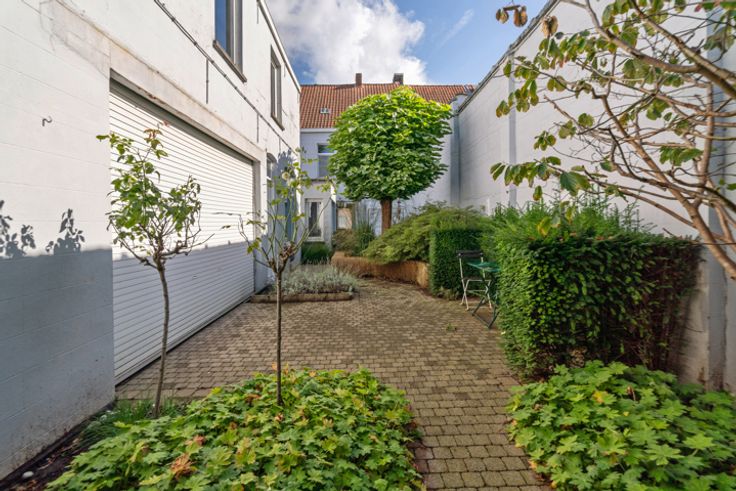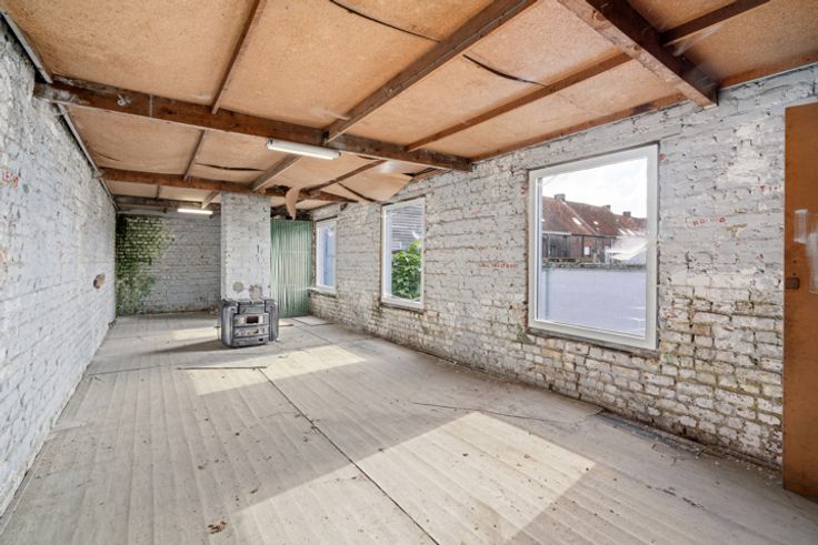 Deze zeer verzorgde ruime te renoveren woning met aansluitend bijgebouw ligt in de directe omgeving van winkels, scholen, openbaar vervoer...het huidige aansluitende bijgebouw biedt meerdere mogelijkheden in gebruik: extra opslagplaats, kleinschalig atelier, hobby,.... INDELING: GELIJKVLOERS: ruime hall met trap naar de verdieping, leefruimte, uitbouw met toilet, keuken en badkamer. Via de hall is er de de toegang naar de binnentuin en het aanpalende bijgebouw dat 2 niveaus heeft (totaal ca 40 m²). VERDIEPING: nachthall, 3 kamers waarvan twee zeer ruim en de oorspronkelijke badkamer VASTE TRAP naar de hoge ZOLDERVERDIEPING De woning heeft een kleine inpandige garage (2,16x8,7) die momenteel ook als wasplaats wordt gebruikt. Deze garage is door zijn dubbele poort ook een handige doorsteek naar de binnentuin en het atelier!