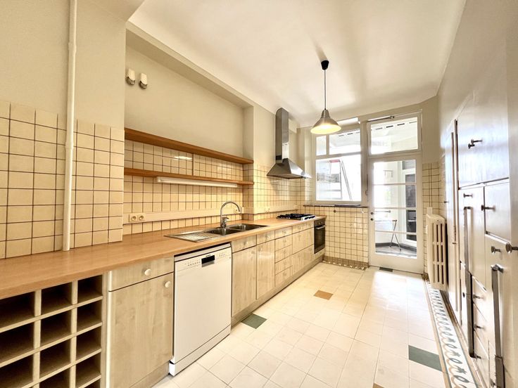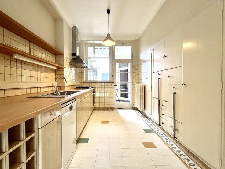 Op de Louizalaan, op een steenworp afstand van de Place Stéphanie, ligt dit ruime appartement dicht bij alle voorzieningen, op de 5e verdieping van een zeer goed onderhouden gebouw. Het bestaat uit een inkomhal die uitgeeft op de woonkamer van 50 m² en ook op de grote keuken (met veel bergruimte), een overdekt terras aan de achterkant, een gastentoilet, een nachthal (met veel kasten), een dressing, twee slaapkamers (aan de achterkant), een badkamer en een douchekamer. De flat heeft ook een privékelder. De flat is net gerenoveerd en is per direct beschikbaar. Kosten: ongeveer €400 voor gemeenschappelijke ruimtes, verwarming en warm water. Meer woningen ? www.agencewashington.be Grond: Gelamineerde bevloering . Vensters: PVC . Andere uitrusting: Blinden, Kasten, Dubbele beglazing, Lift . : Total énergie primaire: 52 kwh/an, EPC certificaat nb., : 84 Kg Co2m²an, : 324 Kwh . Elektrische uitrusting: Elektrische blinden . Uitrusting van keuken: Wasemkap, Vaatwasmachine, Oven, Gas fornuis, Keuken meubelen . Verschillende kamers: Toilet, Washok, Kelder . Kelderverdieping: Kelder . Vierde verdieping: Kleedkamers, Woonkamer: 50 m², 2 Badkamer(s), Inkomhal, Kledingkamer, 1 Keuken, Slaapkamer: 18 m², Slaapkamer: 14 m²