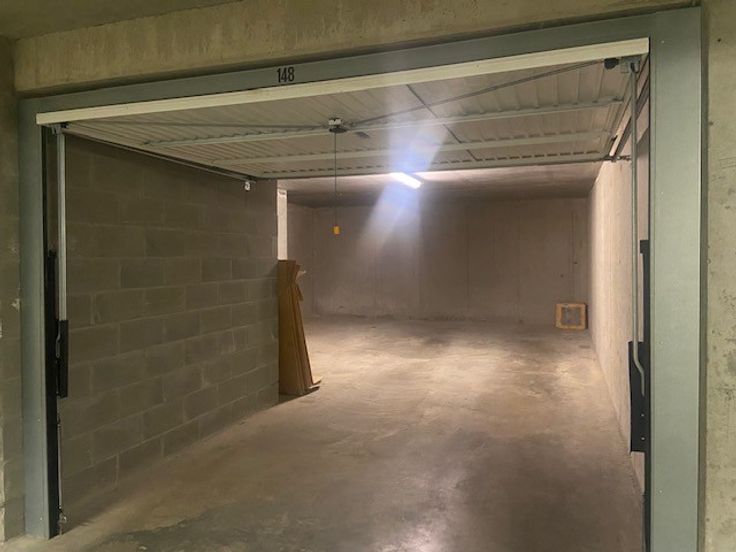 Gemakkelijk en toegankelijke garagebox gelegen in residentie Zonnehaven 1. Afmetingen: diepte: +/-9,90m x breedte: 3m tot 5,80m. Poortbreedte: 3m