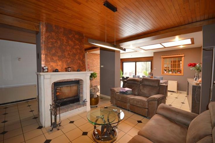 SÉJOUR 9.18 x 5.56 (51.08m²) insert au bois, prise belgacom, accumulateur, baie vitrée sur terrasse