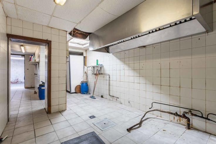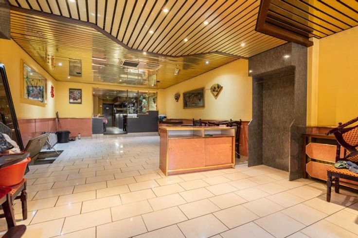 Op het gelijkvloers is er de commerciële ruimte, die momenteel is ingericht en aangekleed als restaurant.