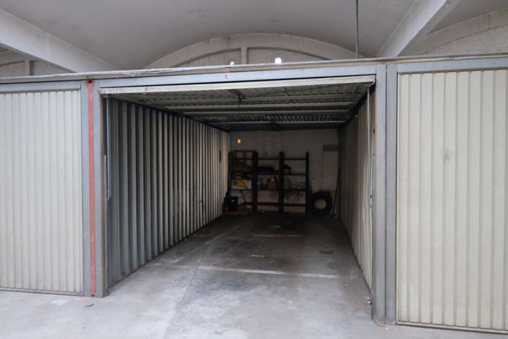 Afgesloten garagebox te koop in een afgesloten gebouw.