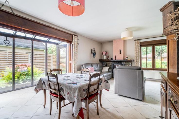 Très belle maison comprenant : Au rez-de-chaussée : - Un hall d'entrée - Un salon/salle à manger - Une cuisine équipée - Une buanderie - Un WC séparé - Un bureau - Une chambre avec douche et évier - Un garage et parking et carport - Une véranda A l'étage : - Un hall de nuit - 3 chambres - Une salle de bain - 2 greniers Extérieur : Très grand et vaste jardin clôturé Spécificités : PEB : D Electricité : non conforme RC : 1103 euros