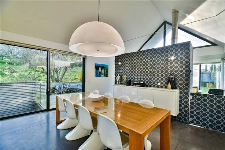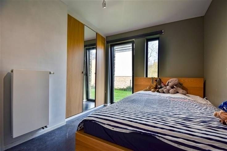 Sorry er is geen nederlandse vertaling beschikbaar. Idéalement située au calme, dans les campagnes du Condroz, magnifique habitation contemporaine implantée sur un terrain de ± 850m² qui se compose comme suit: Au-rez-de-jardin; hall de nuit, trois belles chambres de ± 11m² chacune, dressing, patio et salle-de-bains avec baignoire et douche à l'italienne. Au rez-à-rue; hall d'entrée, WC indépendant, salon très lumineux avec vue sur le jardin, belle cuisine super équipée, salle-à-manger, arrière cuisine et agréable terrasse bien orientée SUD-OUEST. Cette charmante maison vous séduira par ses espaces ouverts, sa fonctionnalité et sa modernité. Caractéristiques techniques: Chauffage sol, poêle à pellets, panneaux solaires, électricité CONFORME, excellente performance énergétique (PEB B!!), VMC double flux, citerne d'eau de pluie (5.000L) raccordée, mini-station d'épuration. Faire offre à partir de 389.000€ (sous réserve de l'acceptation des propriétaires). www.immo-bertrand.be