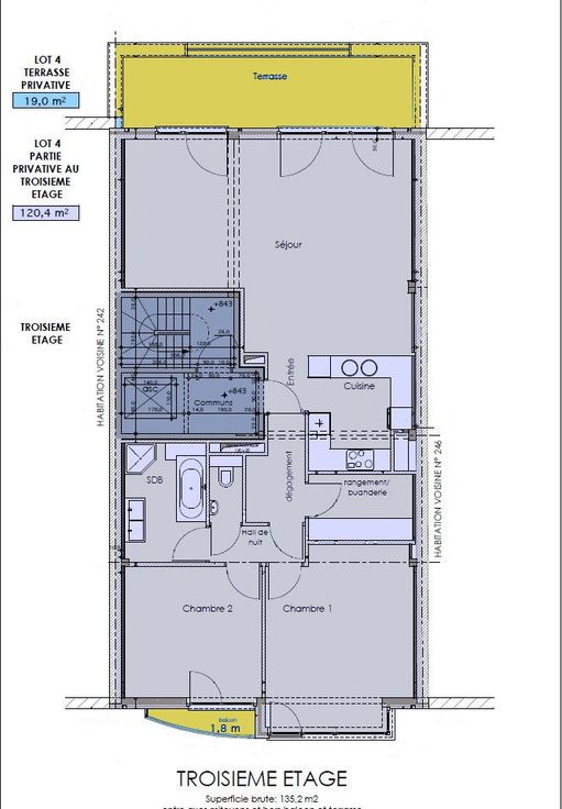 Schaarbeek/Josafat/Lambermont: in een klein gebouw uit 2010, op de 3de verdieping met lift (conform de normen), prachtig appartement van 120m² (plannen), bestaande uit: inkomhal, vestiaire, woonkamer van 40m² op natuurstenen tegels met toegang tot een mooi terras van 13m², mooie super ingerichte open keuken, gang, bijkeuken, nachthal, 2 slaapkamers van 13,5 en 18,7m² met bamboe parketvloer, grote douchekamer, apart toilet met lavabo, balkon aan de voorzijde en terras aan de achterzijde.5 en 18,7m² met bamboe parketvloer, grote doucheruimte, apart toilet met wastafel, balkon aan de voorzijde en 13m² terras aan de achterzijde. Modern, strak design. Dubbele beglazing. PEB C+. Grote privékelder. Fietsenberging. Parkeren (lift systeem aan de str aatkant). Hoogwaardige materialen. Elektriciteit voldoet aan de eisen. Zonnepanelen op het dak om de gemeenschappelijke ruimtes van stroom te voorzien. De flat wordt momenteel verhuurd onder een contract dat in werking trad op 02/01/2019 voor een periode van 9 jaar. Alle meters zijn individueel. Syndicaat. Om te ontdekken! : 160 Kosten, Huur contract . : Zicht op tuinen . : Park, Tennis, Tram: m, Supermarkt, Metro: m, Ziekenhuis: m, School: m, Kinderdagverblijf, Winkel, Sporthal, Bus: m, Snelweg, Luchhaven . : Verf . : Parket, Vloertegel . : Dubbel glas, Aluminium . : Kasten, Lift . : Fotovoltaïsche panelen, Thermostaat, Telefoon kabel, Intercom, Kabel TV . : EPC certificaat nb., CO² uitstoot: 17 Kg Co2m²an, Energie dienst: 87 kw