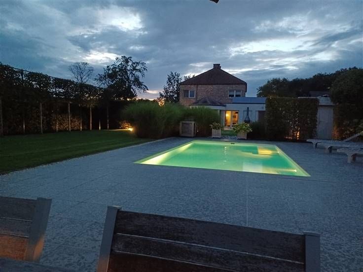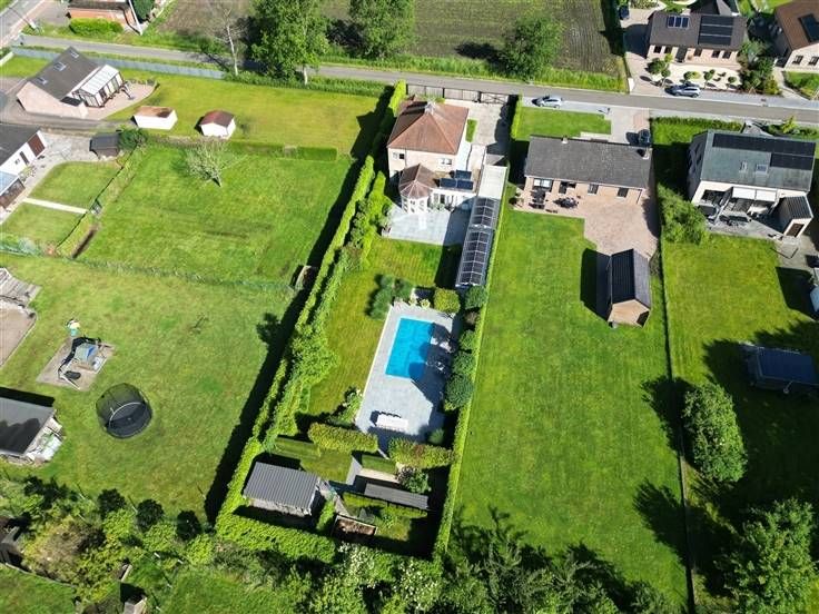 VILLA MET VERWARMD ZWEMBAD Elk ernstig bod wordt in overweging genomen. Deze prachtige, rustig gelegen villa met extra voorzieningen biedt een luxueuze levensstijl. Met het verwarmde zwembad, de automatische schuifpoort en carport voor meerdere auto's, is het zeker een comfortabele leefomgeving. De aangelegde tuin met automatische verlichting en beregening voegt een vleugje elegantie toe, terwijl de speksteenkachel met warmwaterfunctie zorgt voor gezelligheid en efficiëntie. Niet te vergeten de zonnepanelen en zonneboiler die helpen bij duurzaamheid en kostenbesparing. Met ingebouwde kasten en 3-4 slaapkamers met dressing is er ook voldoende opbergruimte en privacy. Het volledige omheind domein zonder inkijk; een alarmsysteem en camerabewaking bieden gemoedsrust en veiligheid. Dit is echt uw droomhuis! Troeven van deze woning: + Instapklaar, tot in de puntjes verzorgd + Oprit met meerdere parkeerplaatsen + Automatische poort met camera en carport voor 2 à 3 wagens + Volledig omheind en tuin met automatische verlichting en beregeningsinstallatie van op afstand te bedienen + Tuinhuis met technische installatie voor het verwarmde zwembad 2022(warmtepomp) + Alarm + 32 zonnepanelen en zonneboiler voor warm water + Speksteenkachel met warmwaterfunctie + Vol eiken binnendeuren + massieve parket in leefruimte + Veel opbergkasten + 3-4 slaapkamers + Bureau of ruimte voor zelfstandig beroep Onder de