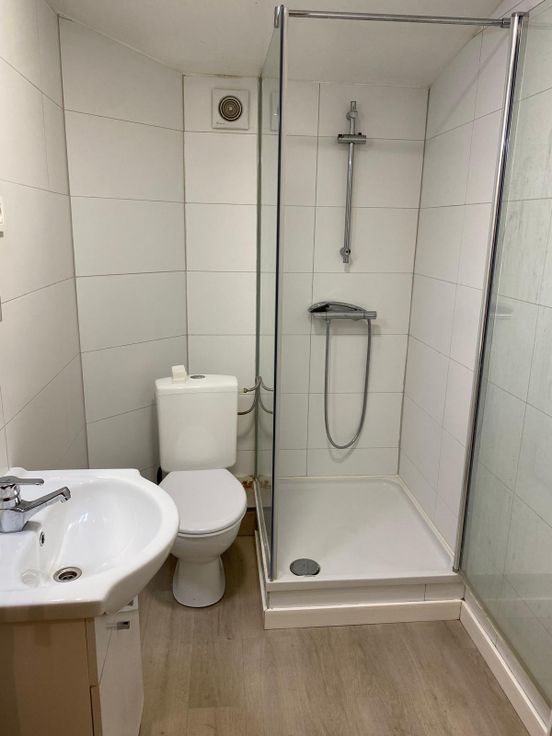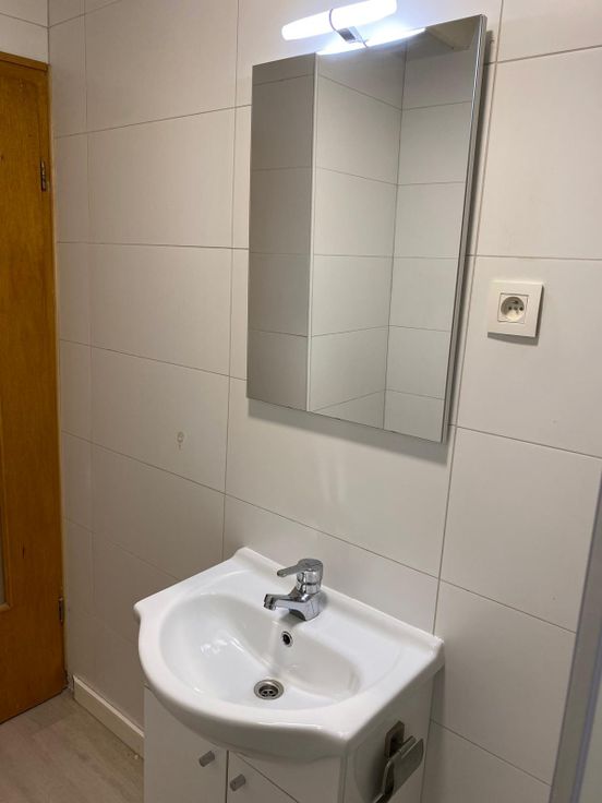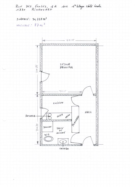 Situé en face de la gare de Rixensart au 1er étage. Le studio a été entièrement rénové. Il comprend un hall d'entrée avec grands placards, une pièce de vie, une salle de douche avec toilette, une petite cuisine équipée d'une taque de cuisson électrique, d'un four micro ondes mixte et d'un frigo. L'appartement dispose également d'une petite cave.