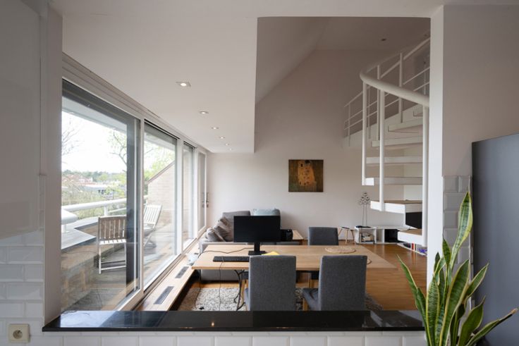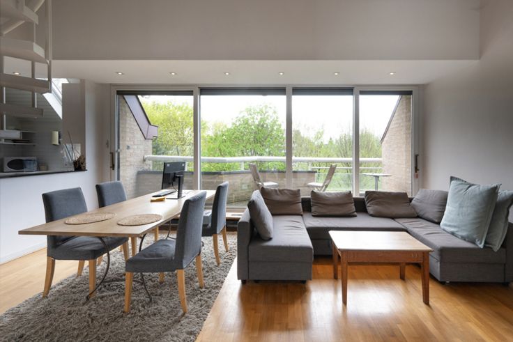 UKKLE, wijk Vivier d'Oie, op een steenworp afstand van het Terkamerenbos, met alle voorzieningen in de buurt, mooi DUPLEX APPARTEMENT (4slpkm/2bdkm) van ±147m² met terrassen, parkeerplaats (in de prijs inbegrepen) en kelder. PEB : D+ ! Gelegen op de 3e en bovenste verdieping van een gebouw uit 1978, bestaat het op de eerste verdieping uit een inkomhal, toilet met wastafel, een grote en lichte woonkamer van ±44m² bestaande uit een salon met functionele open haard die toegang geeft tot het zuid-west gerichte terras met een mooi bebost uitzicht en een ingerichte keuken (Siemens/AEG elektra). Nachthal met ingebouwde kasten, slaapkamer n°1 van ±15m² met kasten en privéterras, slaapkamer n°2 van ±9,5m² en een douchekamer. Op het tweede niveau, slaapkamer n°3 van ±13,5m² met privé terras en en-suite badkamer (bad, dubbele wastafel, wc en wasmachine ruimte), slaapkamer n°4 van ±9,7m². Parkeerplaats op -2 en kelder op -1. Lasten ongeveer 700€/maand (eigen verwarming en water, beroep op reservefondsen, lening voor renovatie van dak en lift, onderhoud lift, beheerbedrijf, onderhoud, tuinonderhoud, elektriciteit voor gemeenschappelijke ruimtes, verzekering, diverse werkzaamheden). Elektriciteit in overeenstemming. Meer informatie bij L&P!