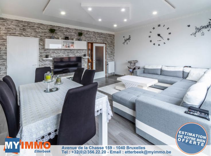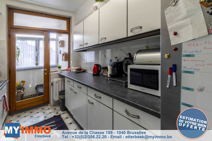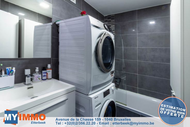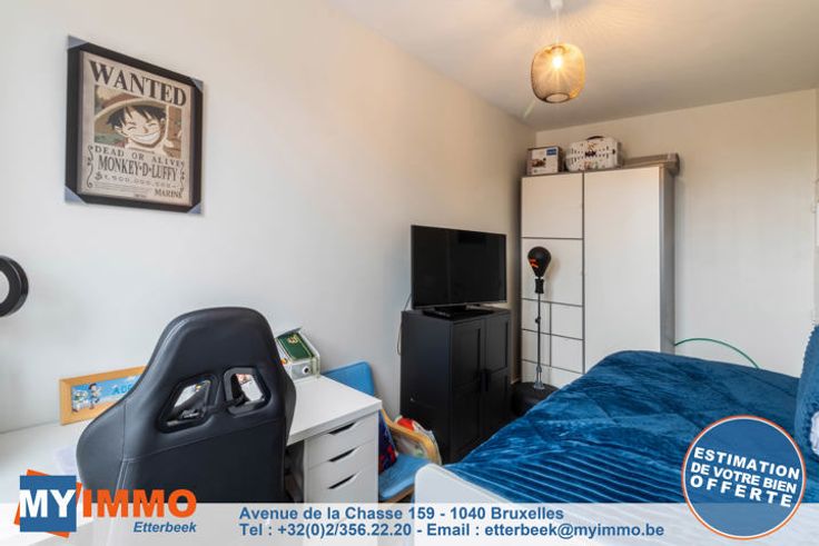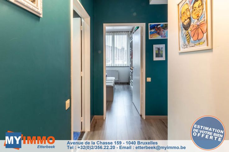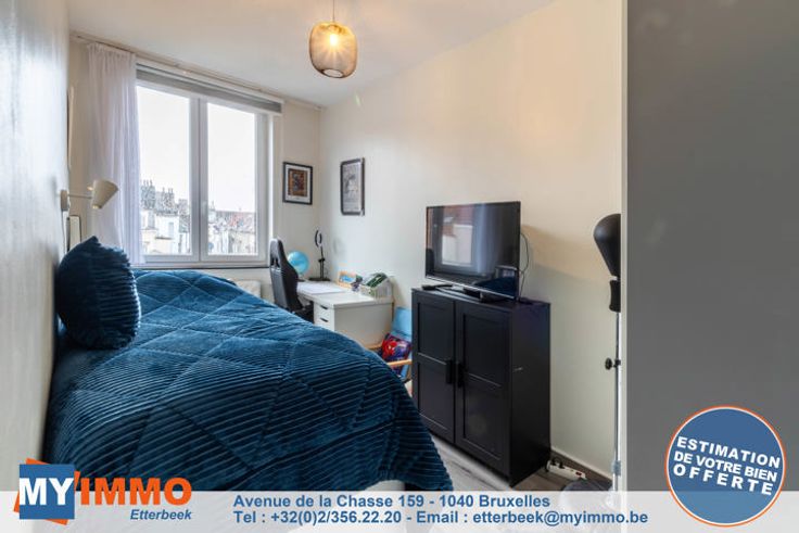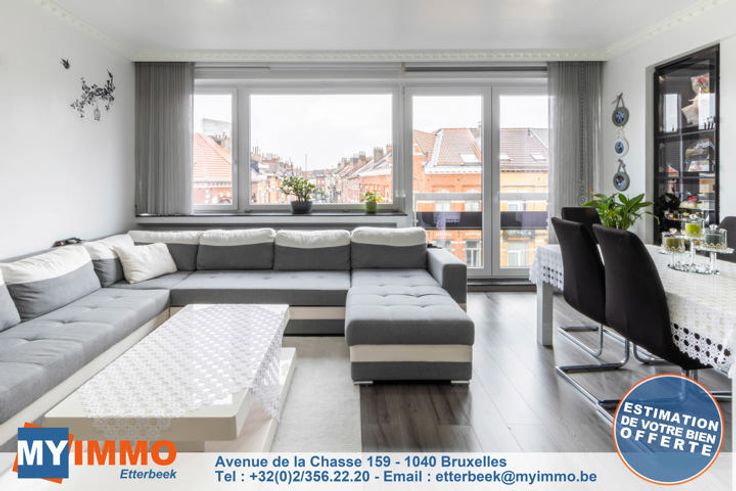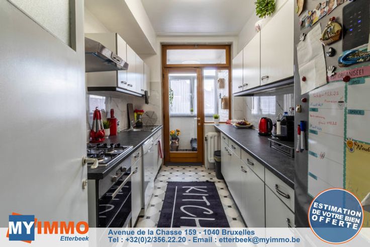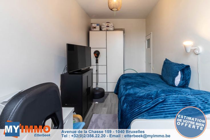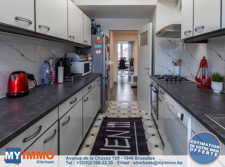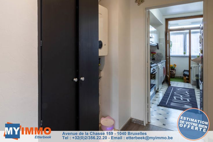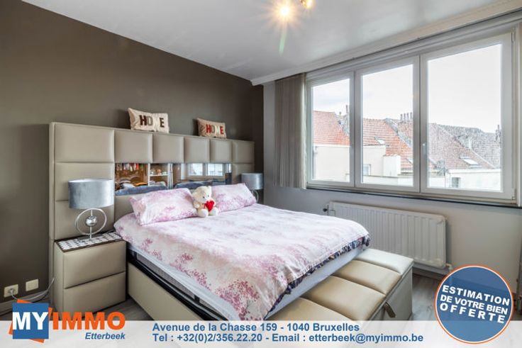 Schaarbeek - MYIMMO Etterbeek heeft het genoegen u dit prachtige appartement met 2 slaapkamers van ongeveer 96m² (volgens PEB) voor te stellen, in onberispelijke staat. Het bestaat uit een ruime inkomhal met bergruimte, die leidt naar een lichte woonkamer van +/- 33m² die toegang geeft tot een gang met bergruimte waar de nieuwe BOSCH condensatieketel staat, die leidt naar de mooie, volledig uitgeruste keuken, die toegang geeft tot een ingesloten terras (in afwachting van de RU om te zien of de situatie geregulariseerd moet worden of niet), ideaal als ontspanningsruimte of extra bergruimte. Via een nachthal komt men in het appartement met twee slaapkamers: een grote slaapkamer van +/- 12m² en een kinderkamer van +/- 10m² (2,12m breed), evenals een mooie badkamer met aansluitingen voor een wasmachine en droogkast. Aparte WC. Kelder inbegrepen in de prijs. De PVC ramen met dubbele beglazing dateren van 2016 aan de achterkant en 2022 aan de voorkant. De BOSCH ketel is geïnstalleerd in 2023. EPB D geldig tot 2034 en elektriciteit conform tot 2041. Kortom, dit appartement met 2 slaapkamers is in perfecte staat, zonder werkzaamheden, met een goede EPB en elektriciteit conform de voorschriften. Bekijk het nu! Verkooppakket en bezichtigingen op aanvraag. Meer woningen op www.myimmo.be. Advertentie en afmetingen zijn niet contractueel en worden alleen ter informatie gegeven. Deze advertentie vormt geen aanbod tot verkoop, maar een prijsvoorstel waarbij de eigenaren vrij zijn in hu