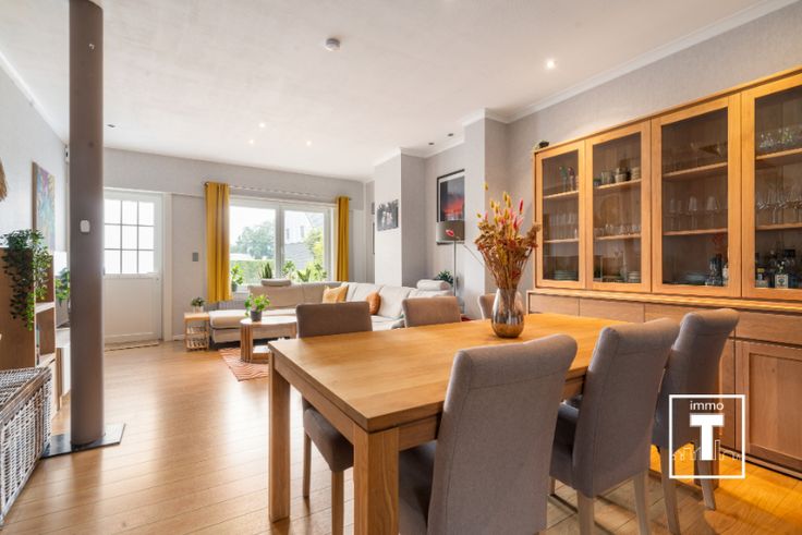 Toffe halfopen bebouwing voorzien van alle comfort! Indeling: via de oprit en zijn parkingplaats begeven we ons richting de voordeur. Lichtrijke woonkamer en eetplaats met aanpalende keuken. Trap naar de 2 kinderkamers en opbergruimte. Achter de keuken treffen we nog een veranda en de slaapkamer van de ouders die uitgeeft op de tuin. 1ste verdieping: ingerichte badkamer en wasplaats. De woning geniet een zijdelingse doorgang (via eeuwige erfdienstbaarheid) naar de tuin wat superhandig is voor bv. de fietsen. Interesse? Stuur vandaag nog jouw mailtje! EPC: 254 UC: 2492519. SI in aanvraag. Renovatieplicht: nee
