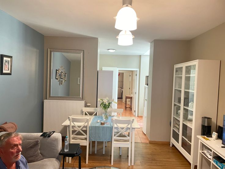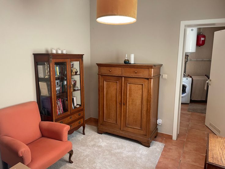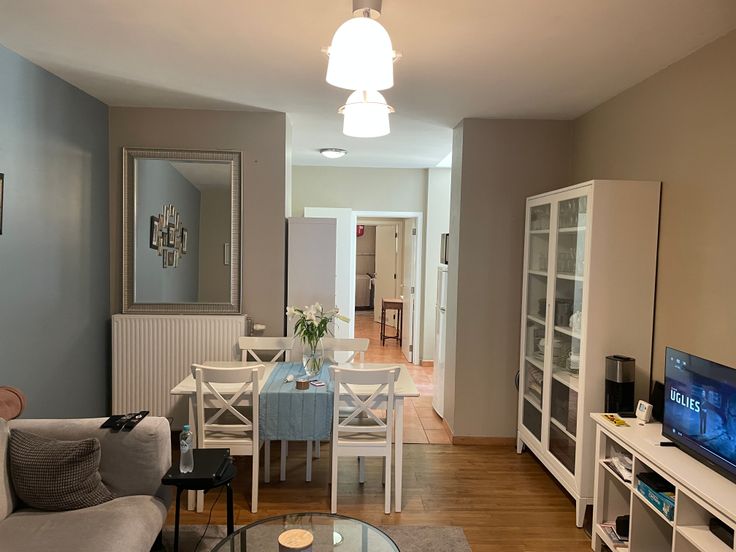 Appartement au rez de chaussée avec 2 chambres, cuisine semi équipée avec taque au gaz, frigo-congélateur, salle de bain avec baignoire, chaudière individuelle, grande chambre avec parquet au sol, petite chambre avec carrelage au sol, grand salon avec parquet au sol, châssis PVC double vitrage partout. Maison tranquille, pour personnes calmes. Plus d'infos : voir photos.