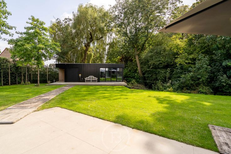 Gelegen in een rustige doodlopende straat vinden we deze tijdloze moderne villa. De volledig instapklare woning werd in 2015 gebouwd met hoogwaardige en onderhoudsvriendelijke materialen. Met zijn vele raampartijen baadt het huis de ganse dag in het zonlicht. De keuken en woonkamer vloeien naadloos in elkaar en genieten van het zuid georiënteerd terras en de mooi aangelegde tuin. Het praktisch bijgebouw is voorzien van een kitchenette, toilet, berging en buitendouche. De villa biedt een woonoppervlakte van 374 m² en bestaat op het gelijkvloers uit een mooie inkomhall met corian trap, gastentoilet, vestiaire, bureau/ polyvalente ruimte met gashaard, grote leefruimte met een tweede gashaard en open keuken met eiland en berging. Aansluitend vinden we nog een inpandige garage met ingebouwde kasten en een geïntegreerde carport voor 2 wagens met alle voorzieningen om uw wagen elektrisch op te laden. Op het eerste verdiep bevinden er zich 4 ruime slaapkamers, apart toilet, berging en een praktische wasplaats. De master bedroom beschikt over een ruime dressing met ingebouwde kasten, een complete badkamer bestaande uit afzonderlijk toilet, ligbad, dubbele lavabo en inloopdouche. De overige 3 slaapkamers, telkens voorzien van ingebouwd bureel, delen een ruime badkamer met dubbele lavabo en inloopdouche. Het tweede verdiep doet momenteel dienst als praktisch bureel maar heeft heel veel verschillende mogelijkheden. Kortom, een volledig instapklare moderne en energiezuinige vill