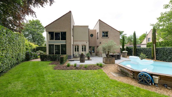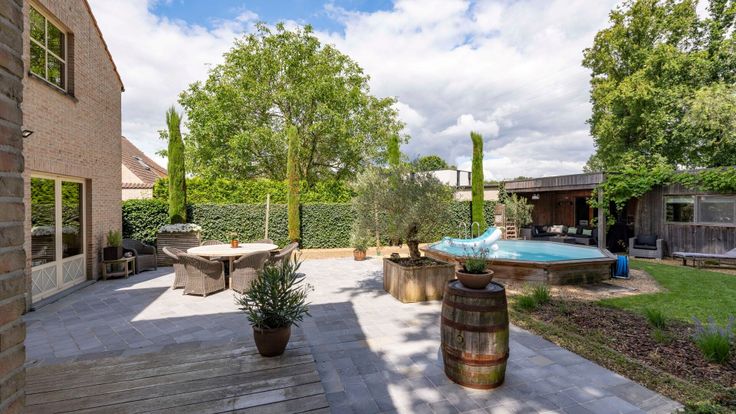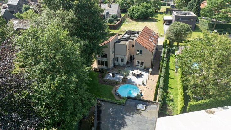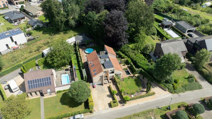 We betreden de woonkamer via de ruime inkomhal die toegang geeft tot de aangename leefruimte. Deze is ingedeeld in een gezellige zithoek op parket met gashaard. Voorts vinden we de eetkamer, leeshoek en tuinkamer terug. De halfopen keuken is volledig geïnstalleerd met de nodige toestellen. Bureauruimte met zicht op de tuin, deze ruimte kan ook dienst doen als 5e slaapkamer. Verder bevindt er zich een praktische bergruimte en inpandige garage met automatische poort. 4 slaapkamers, dressing en wasplaats op de eerste verdieping. Eén van de slaapkamers is voorzien van airco en de kinderkamers zijn geïnstalleerd met ingemaakte kasten. Op deze verdieping heeft u ook toegang tot de ruime badkamer. In de tuin is het aangenaam vertoeven omwille van het ingebouwde verwarmde zwembad. Huisdieren kunnen hier vrij rondlopen aangezien de eigendom volledig omheind is en voorzien van roestvrije poorten langs de zijkant. Achteraan bevindt er zich een vergund buitenhuis dat voorzien is van een keuken, douchekamer, apart toilet en woon/slaapgedeelte. Dit werd vroeger verhuurd via Airbnb maar kan ook perfect dienst doen als zorgwoning, bureauruimte, etc. Bovendien kan uw tuinmateriaal gestockeerd worden in een apart tuinhuis. Bijzonderheden: - Gelegen in een doodlopende straat - Zonnepanelen met groenestroomcertificaten (over te nemen) - Recente verwarmingsketel op gas - Verwarmd ingebouwd zwembad met warmtepomp - Conforme elektriciteitskeuring - Multifunctioneel bijgebouw van 75m²