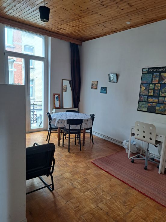Kot a louer dans une colocation avec salle de douche et WC privatif, cuisine, salon et jardin en commun.