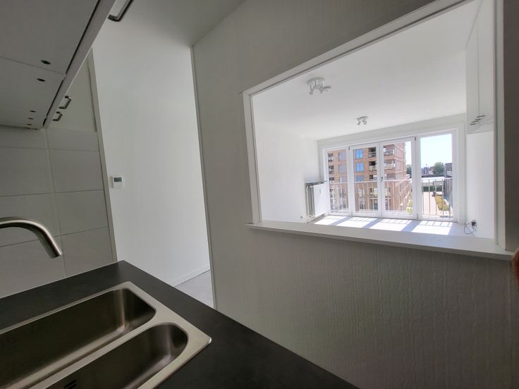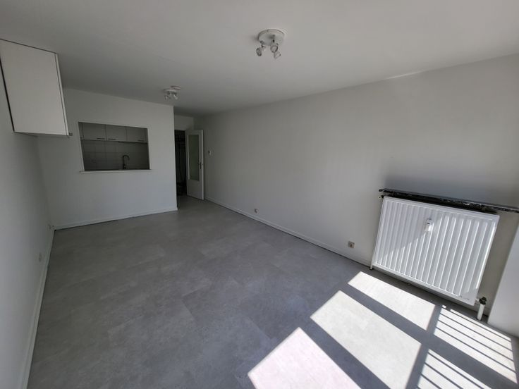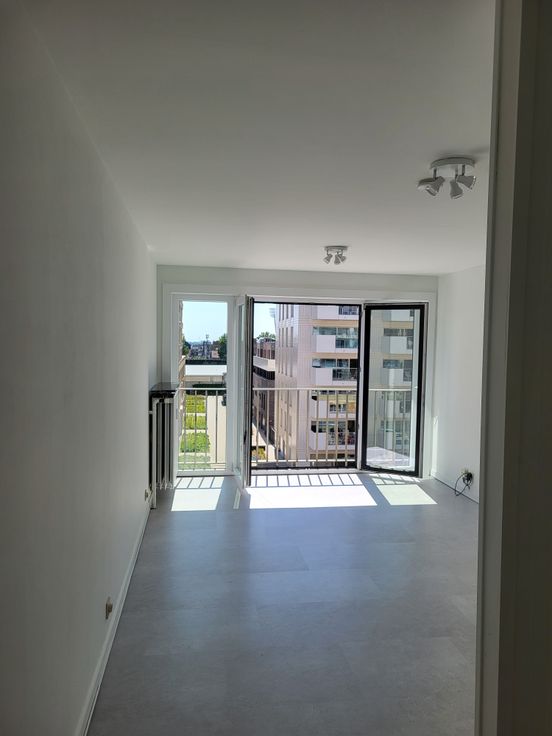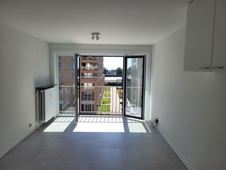 De studio bevindt zich aan de achterkant, op de 4e verd, en geniet daardoor een ideale zon-oriëntatie.