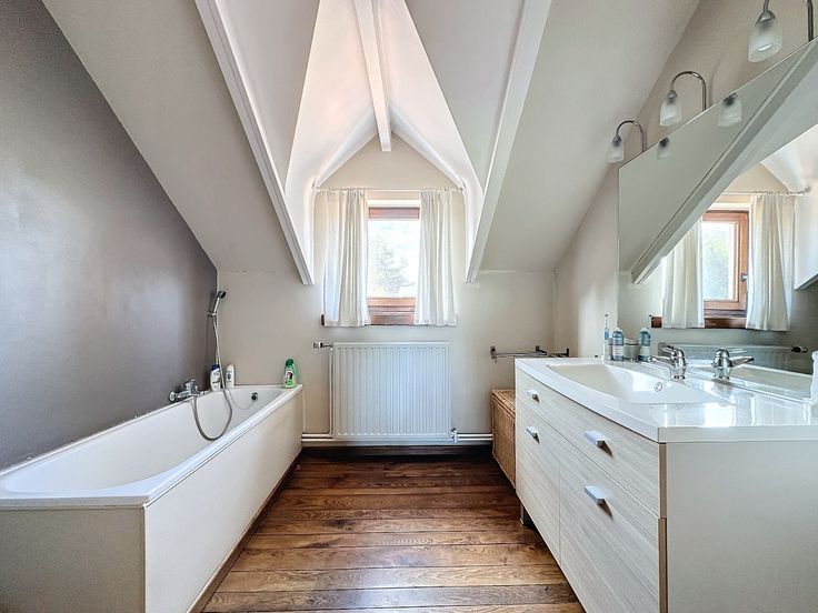 De woning telt in totaal vier ruime slaapkamers, wat ideaal is voor een gezin met kinderen of voor mensen die regelmatig gasten over de vloer hebben. Via de riante inkomhal krijg je toegang tot de bureau en de lichtrijke leefruimte met open keuken.