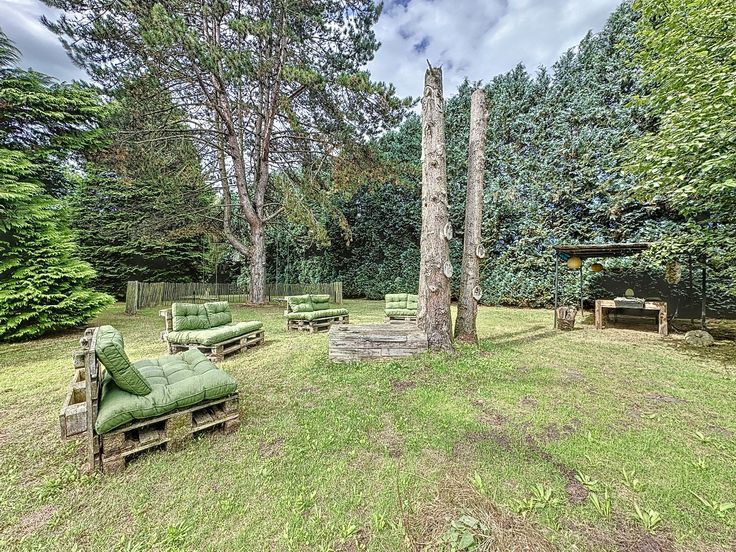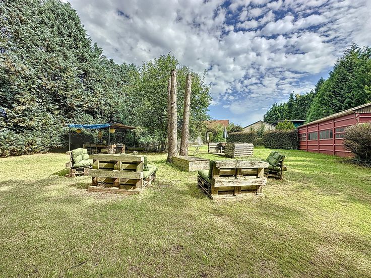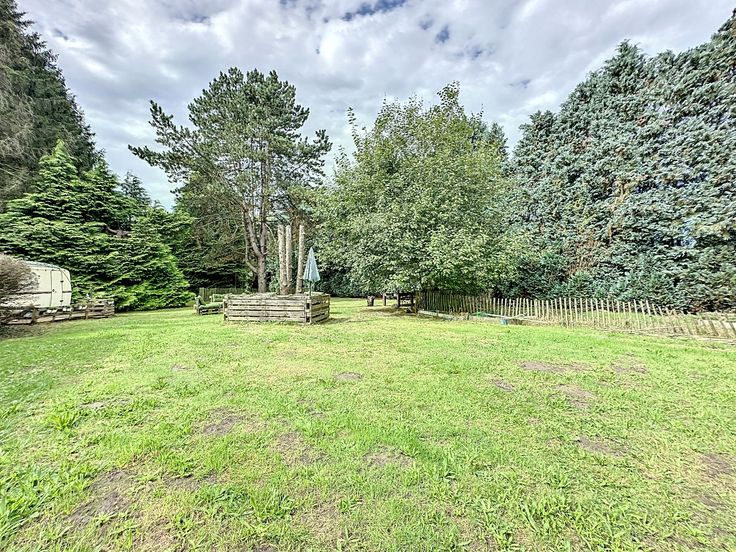De woning is gelegen op een perceel van maar liefst 39 are en beschikt over een enorme tuin met een zonnig terras, een prachtige vijver en talrijke gezellige plekjes, waar je overal heerlijk kunt genieten van de zon en de buitenlucht.