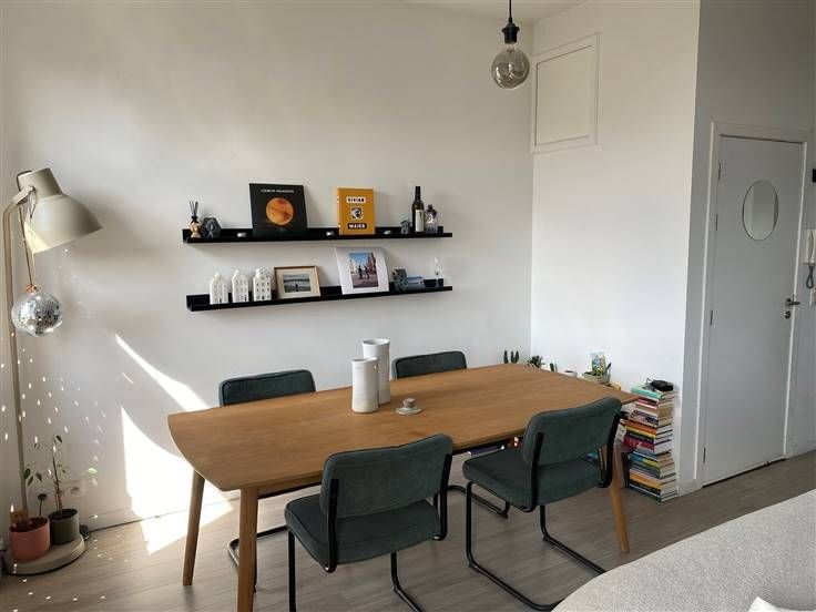 Séjour de +/- 25 m² avec parquet laminé et accès au balcon - Cuisine USA super équipée - Local chaufferie/buanderie - 1 Chambre à coucher de +/- 12 m² avec parquet laminé - 1 Salle de douche avec WC & 1 Cave.